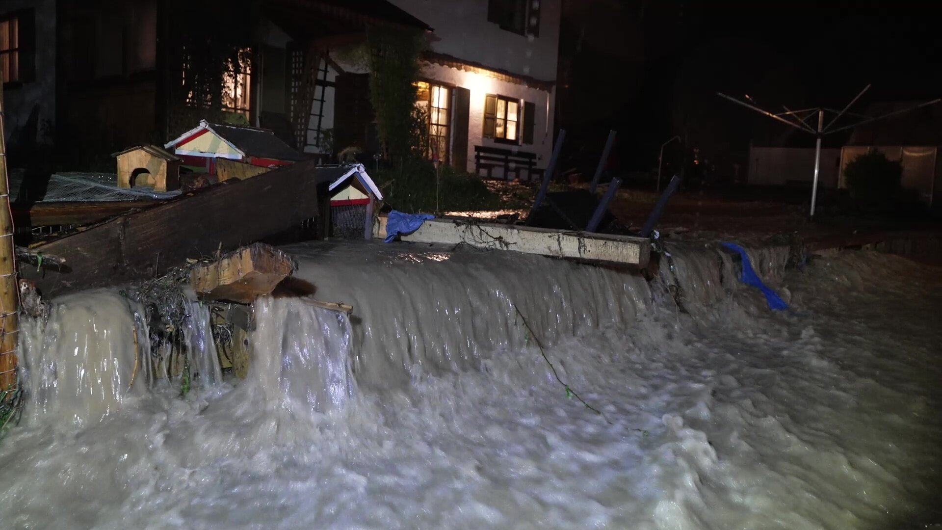 Am Abend ist ein schweres Unwetter durchs Oberland gezogen und hat vor allem rund um Oberammergau zum Teil Überflutungen und große Schäden angerichtet. In letzter Sekunde konnte eine Autofahrerin aus den Fluten auf der B23 Ortsumfahrung Saulgrub gerettet werden. Das Wasser stand zu diesem Zeitpunkt rund fünf Meter hoch. Die Sturzfluten verschlangen ein Feuerwehrauto sowie drei weitere Fahrzeuge. Der Niederschlag war so extrem, dass die Feuerwehren in Altenau, Saulgrub, Bad Bayersoien und Bad Kohlgrub die Einsatzmasse nicht mehr bewältigen konnten. In Bad Bayersoien kam es zu einer schweren Flut, die alles mit sich riss. Sechs Feuerwehen und rund 200 Einsatzkräfte waren allein dort im Einsatz. Derzeit ist die Ortsumfahrung Saulgrub noch immer komplett gesperrt.