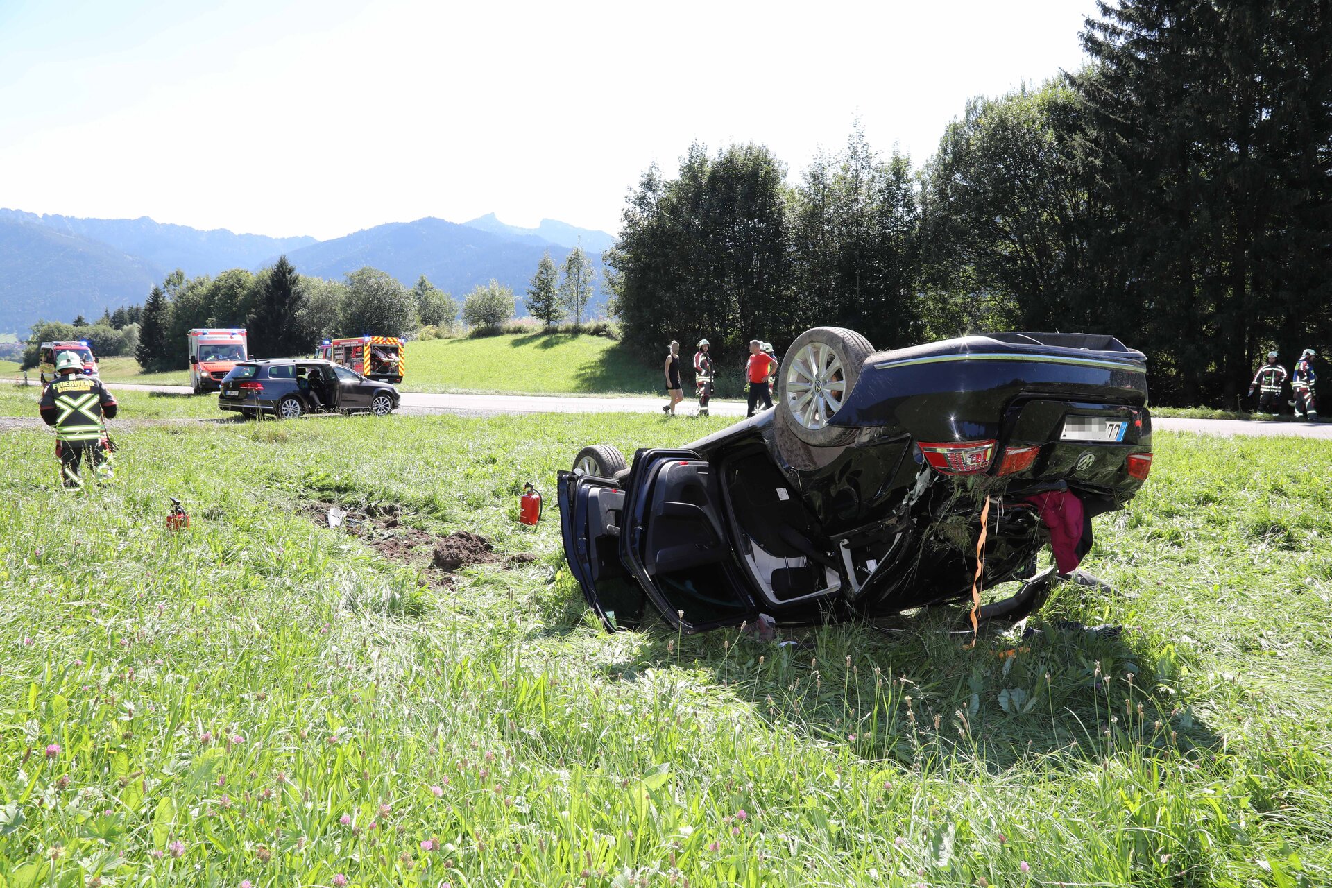 Auto überschlägt sich bei Saulgrub - Baby mit unter den Insassen