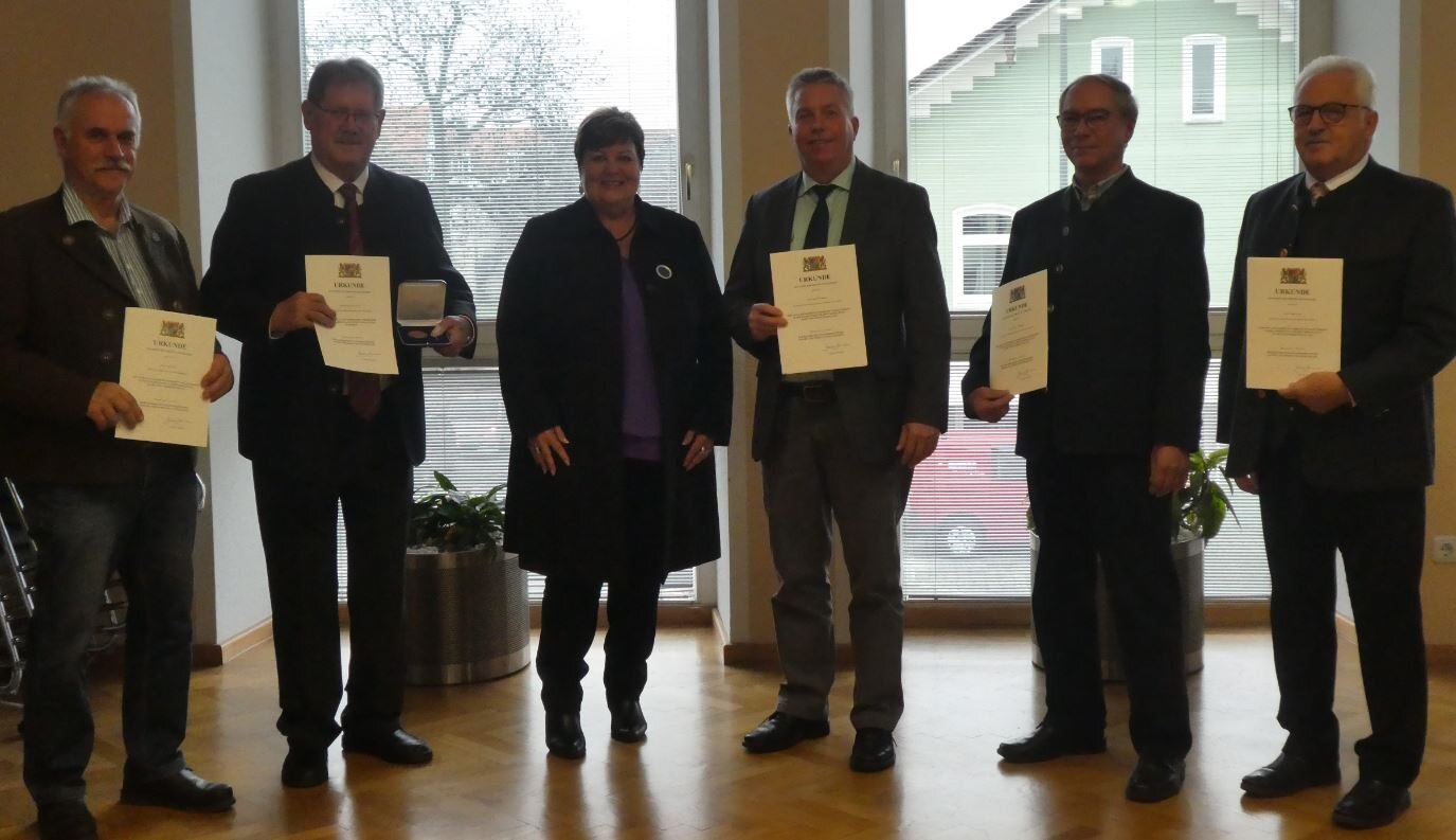 Landrätin Andrea Jochner-Weiß von Weilheim-Schongau hat gestern sechs Gemeinderäte und ehemalige Bürgermeister des Landkreises für ihre langjährigen Verdienste geehrt. „Sie sind alle stets zu Ihrem Wort gestanden“, so die Landrätin. Jochner-Weiß überreichte die Urkunden im Auftrag von Bayerns Innenminister Joachim Herrmann.