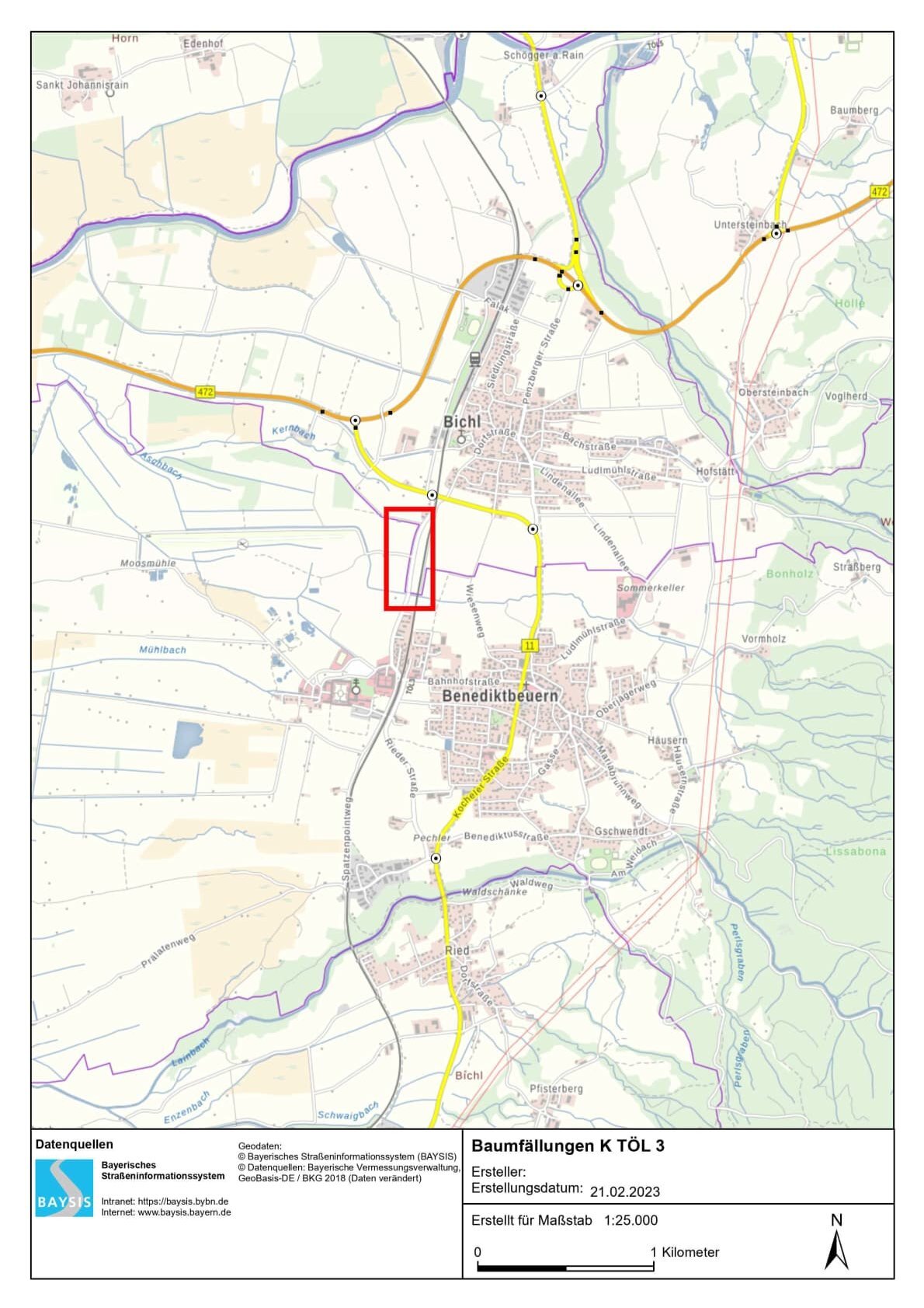 Baumfällungen zwischen Bichl und Benediktbeuern