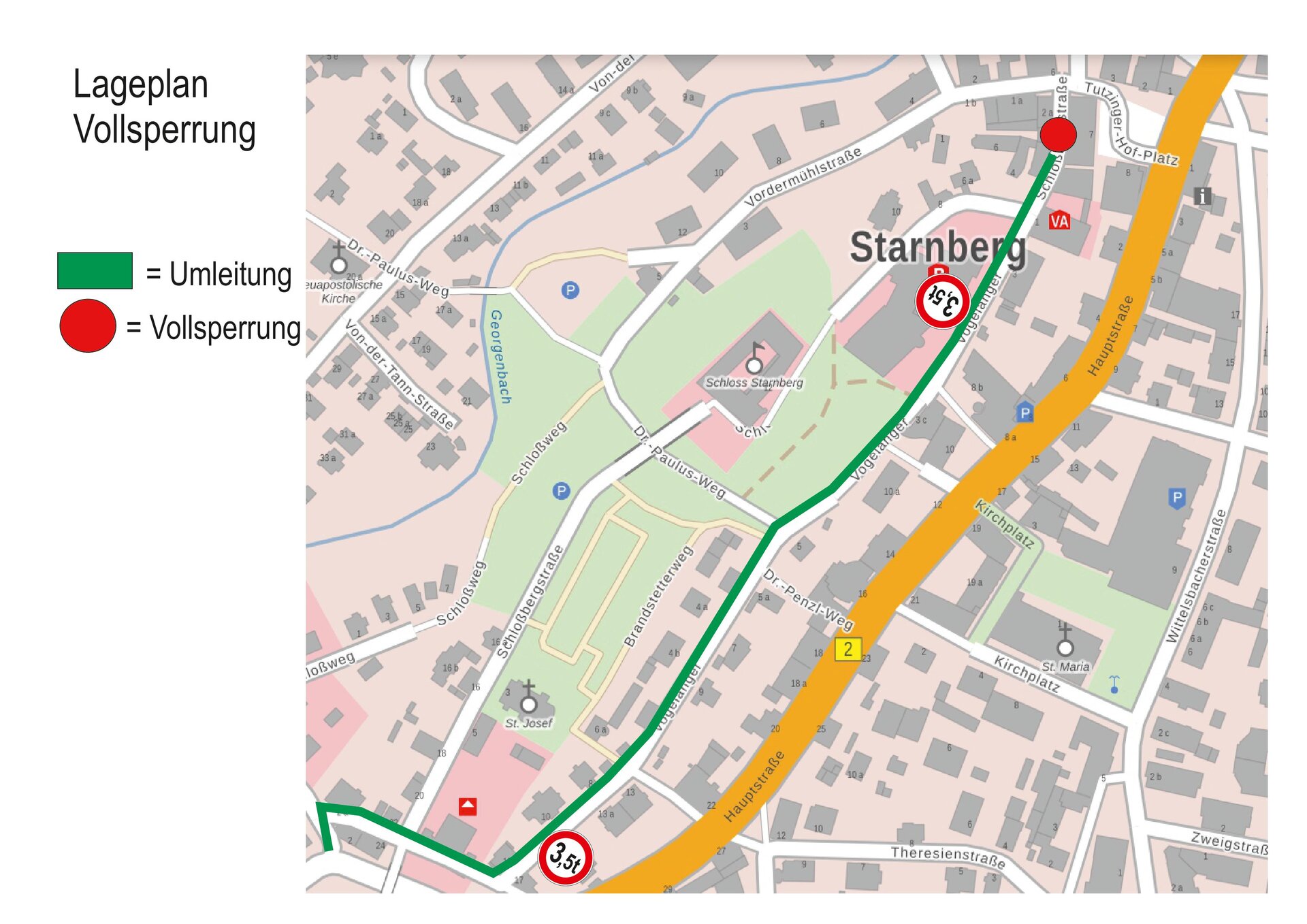 In Starnberg ist ab heute die Schlossbergstraße dicht. Wegen Bauarbeiten wird die Straße bis Mitte Mai gesperrt. Jeweils tagsüber von Montag bis Freitag. Wegen der Baustelle ist das Rathaus mit dem Auto nur noch schwer zu erreichen. Die Stadt empfiehlt als Alternative das Parkhaus im Zentrum.
