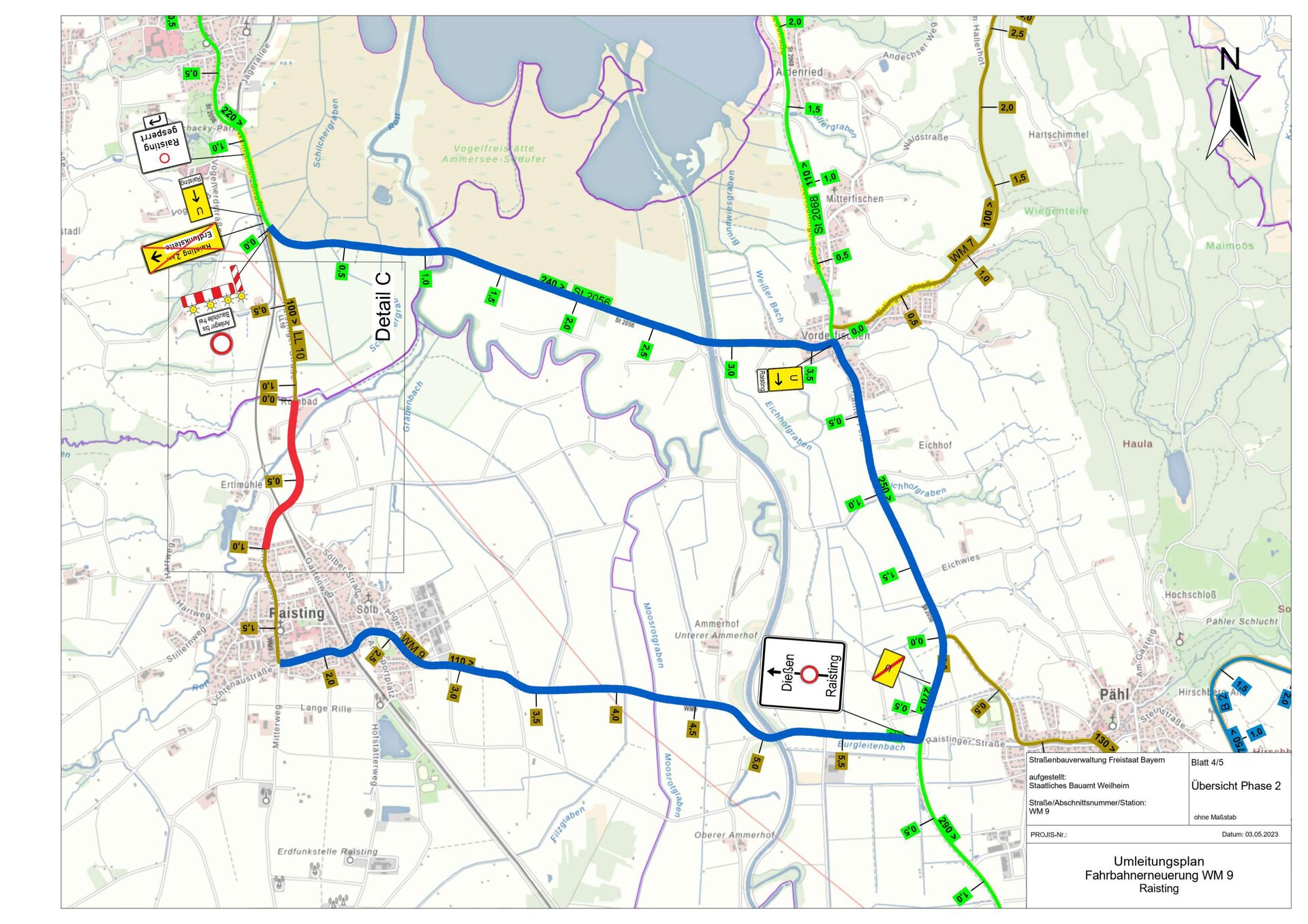 Straßenbauarbeiten an der Kreisstraße WM 9 sorgen ab sofort für Einschränkungen. Phase eins startet heute. Die Kreisstraße nördlich von Raisting ist bis zum Weiler Rothbad komplett gesperrt. Bis Mittwoch sollen die Arbeiten abgeschlossen sein. Direkt im Anschluss wird dann die Kreisstraße östlich von Raisting bis Pähl vollständig gesperrt.