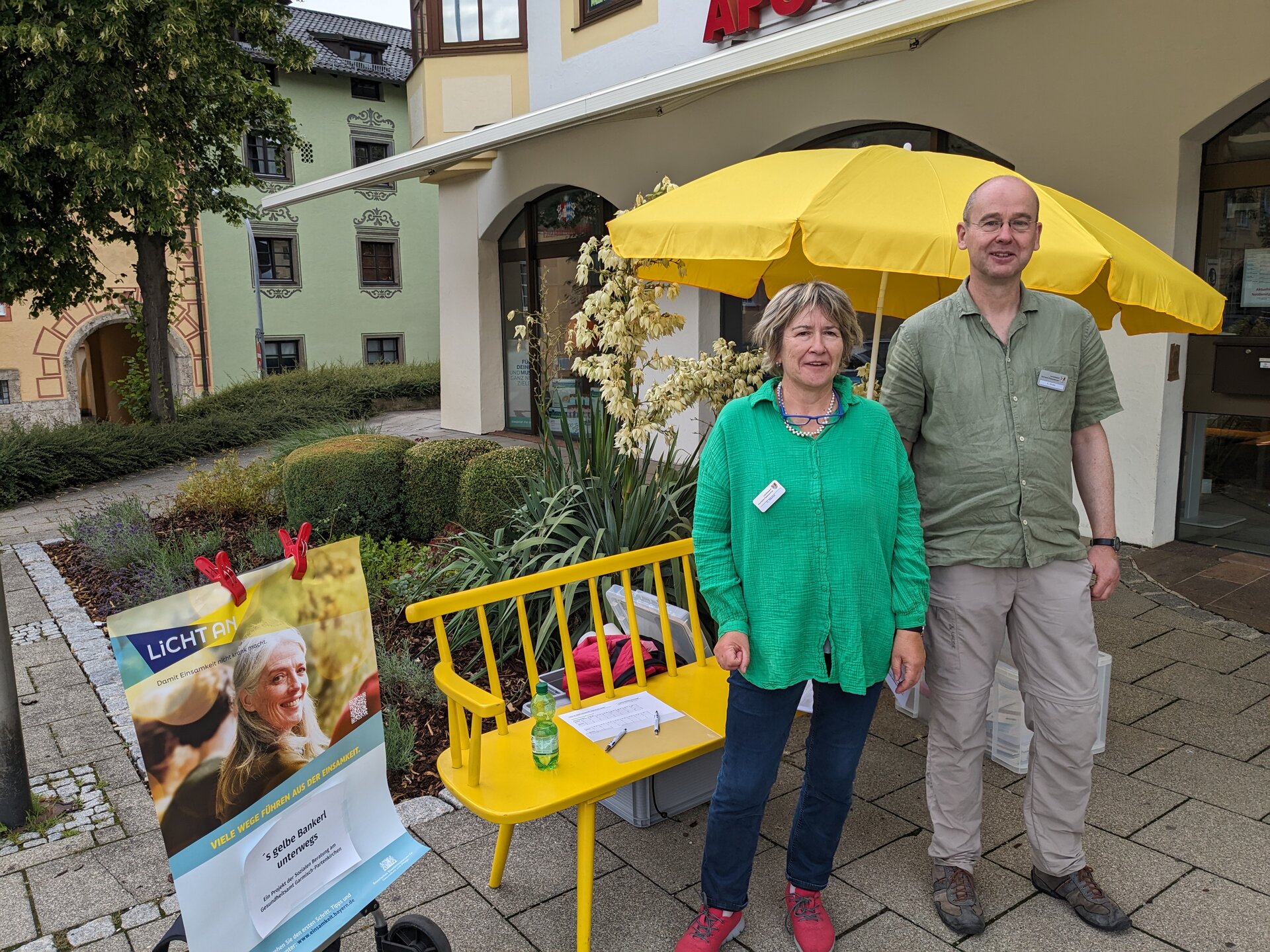 Vor dem Rathaus in Garmisch-Partenkirchen stand zuletzt eine gelbe Bank. Sie war aber nicht zum Ausruhen gedacht. Vielmehr sollte sie eine Anlaufstelle sein zum Thema „Einsamkeit“. Berater des Gesundheitsamtes kamen mit Menschen ins Gespräch und informierten sie über gesundheitliche Gefahren von Einsamkeit. Außerdem gaben sie Tipps und verteilen Flyer mit Kontakten zu Beratungsstellen. Das Landratsamt plant weitere Aktionen mit dem gelben Bankerl.