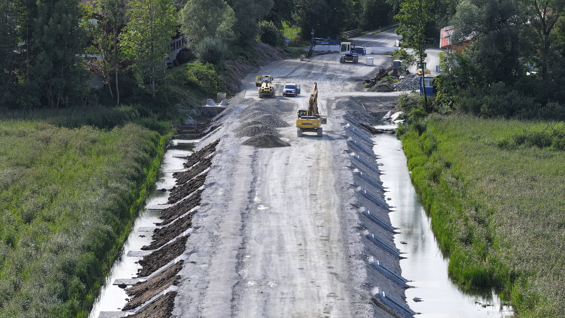 Bald können die Asphaltierungsarbeiten starten. Seit letztem Jahr werden Hochwasserschutzmaßnahmen an der Staatsstraße zwischen Murnau und Schwaiganger durchgeführt. Mittlerweile ist der Damm durchs Murnauer Moos auf volle Höhe geschüttet worden.