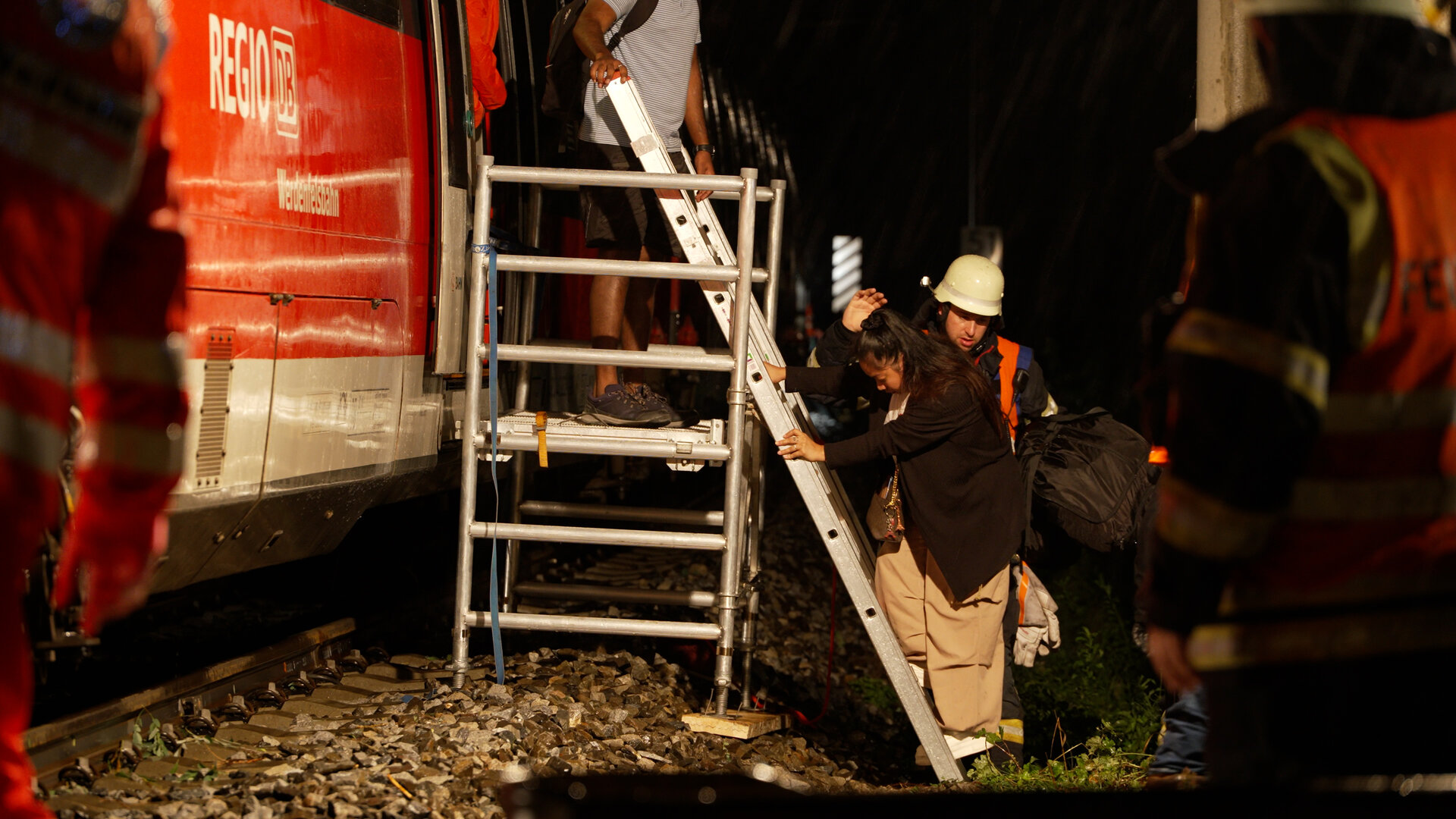 Evakuierung nach Unwetter: Baum erfasst Zug und Oberleitung – 350 Passagiere im Zug gefangen