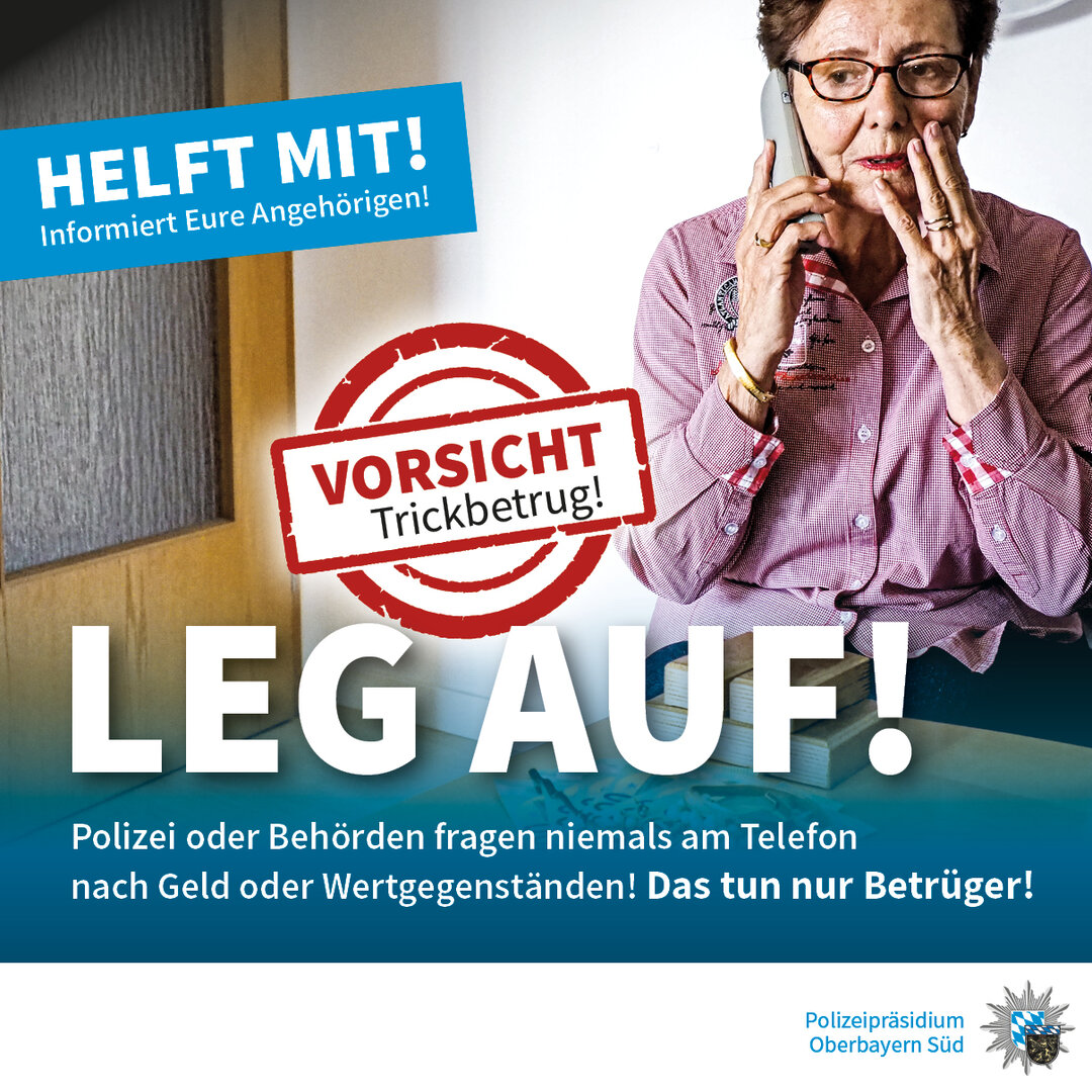 Immer wieder kommt es im Oberland zu Betrugsfällen am Telefon – doch jetzt scheint die verstärkte Aufklärungsarbeit Wirkung zu zeigen. Wie das Polizeipräsidium Oberbayern Nord mitteilt, ist die Zahl der erfolgreichen Betrugsversuche deutlich zurückgegangen. Im Zeitraum von Januar bis Juli nämlich um mehr als 60 Prozent im Vergleich zum Vorjahreszeitraum. Allein im Jahr 2022 waren die Betrüger im Zuständigkeitsbereich des Präsidiums Oberbayern Nord fast 140-mal erfolgreich und erbeuteten mehr als drei Millionen Euro