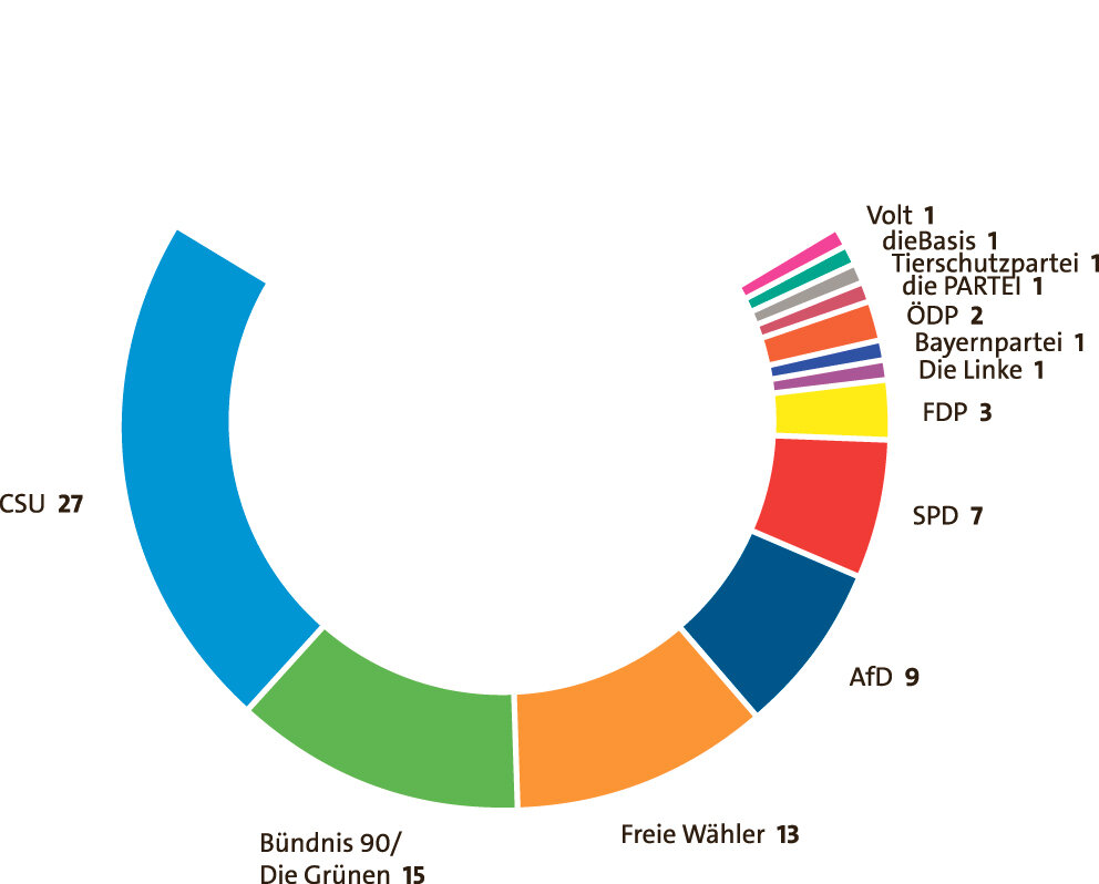Am Sonntag wurde in Bayern gewählt. Seit heute Vormittag steht jetzt das vorläufige Endergebnis der Bezirkstagswahl fest. Auch aus dem Oberland ziehen viele Politiker in das Gremium ein. Für die CSU zum Beispiel Krüns Bürgermeister Thomas Schwarzenberger. Für die Grünen Martina Neubauer aus dem Starnberger Stimmkreis, für die Freien Wähler Garmisch-Partenkirchens Landrat Anton Speer, Rainer Groß für die AfD und Peitings ehemaliger Bürgermeister Michael Asam.