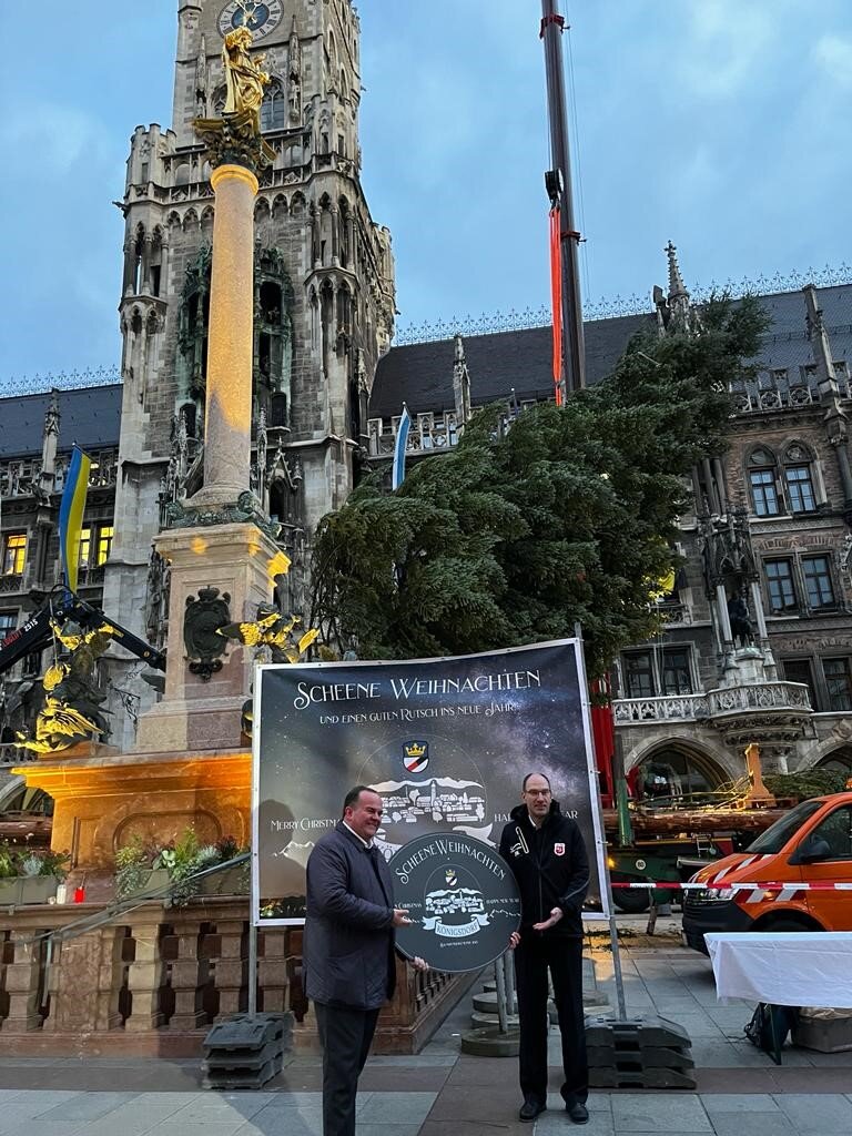 Christbaum aus Königsdorf vor dem Münchner Rathaus angekommen