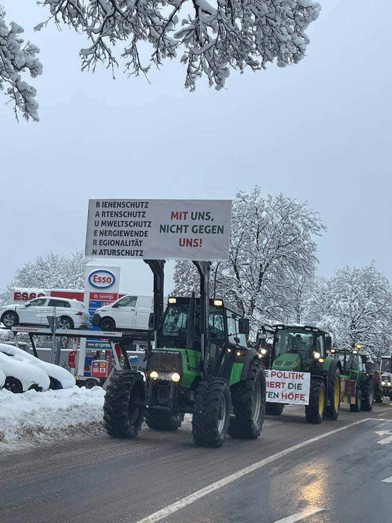Kilometerlange Traktor-Korsos und bunte Parolen auf Papp-Schildern: Tausende Bauern aus dem Oberland haben sich gestern am Start der Protestwoche beteiligt. Dabei geht es den Bauern vor allem darum, gegen die Kürzungen der Bundesregierung zu demonstieren. Viele Landwirte aus dem Oberland sind mit den eigenen Traktoren bis nach München gefahren – auf dem Odensplatz hatten rund 10.000 Menschen demonstriert. Von den Bürgerinnen und Bürgern, die trotz verstopfter Straßen zu spät oder gar nicht an ihr Ziel gekommen sind, gab es viel Zuspruch.