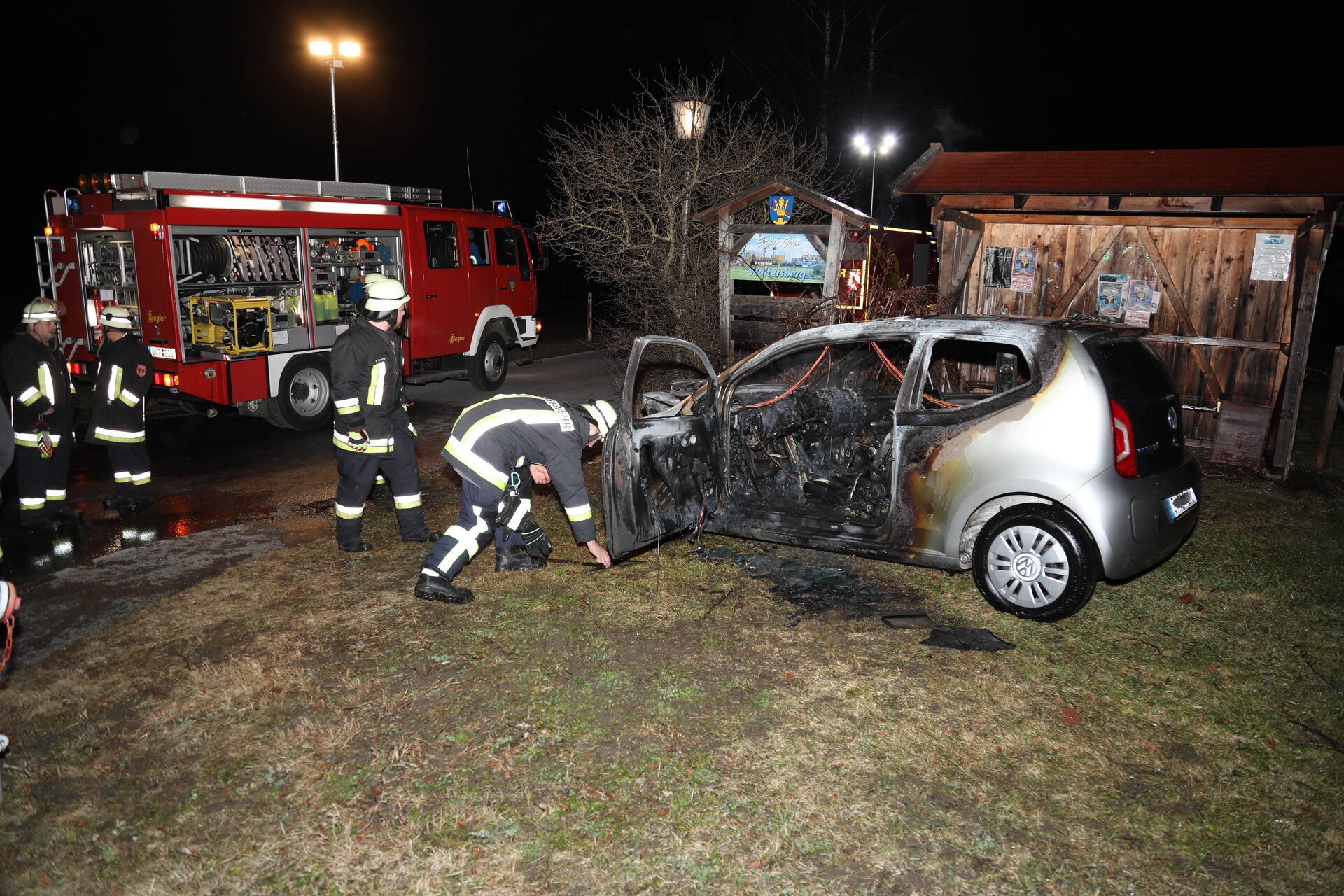 Ein Unfall auf der B2 am Abzweig Waltersberg hat die Feuerwehr gestern Abend gleich zweimal beschäftigt. Ein 26-Jähriger aus dem Landkreis Garmisch-Partenkirchen hatte die Bremslichter eines vor ihm fahrenden Wagens übersehen und war in dessen Heck gekracht. Dabei wurde der 26-Jährige verletzt, er kam in eine Klinik. An beiden Fahrzeugen entstand hoher Sachschaden. Die Feuerwehr Spatzenhausen sicherte die Unfallstelle ab. Um die B2 wieder öffnen zu können, wurde der Kleinwagen auf die Seite geschoben. Anschließend rückte die Feuerwehr ab. Wenig später musste sie aber zurück zum Unfallort, weil das Auto Feuer gefangen hatte und komplett ausbrannte.