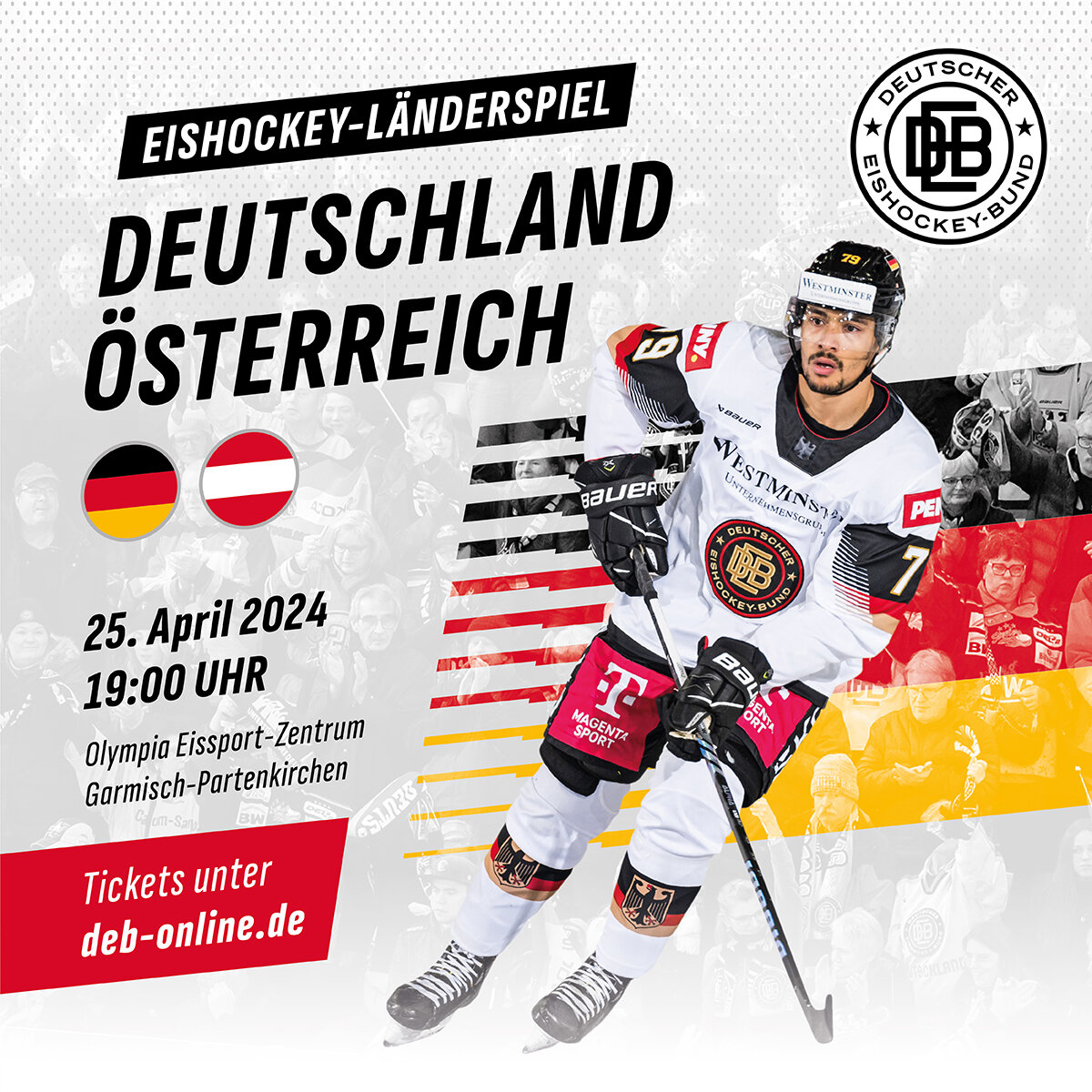Die deutsche Eishockey-Nationalmannschaft kommt zu uns ins Oberland. Wie der DEB mitgeteilt hat, wird das Team einen Teil seiner WM-Vorbereitung in Garmisch-Partenkirchen absolvieren. Der Vize-Weltmeister schlägt vom 22. bis 26.April seine Zelte in der Marktgemeinde auf. Dabei wird es auch ein Länderspiel zu bestaunen geben: Am 25.April trifft die Mannschaft auf die Nachbarn aus Österreich. Los geht’s um 19 Uhr. Zwei Tage später gibt es dann das Rückspiel in Zell am See. Für Fans des DEB-Teams wird es im Olympia-Eissportzentrum auch Showtrainings und Autogrammstunden geben.