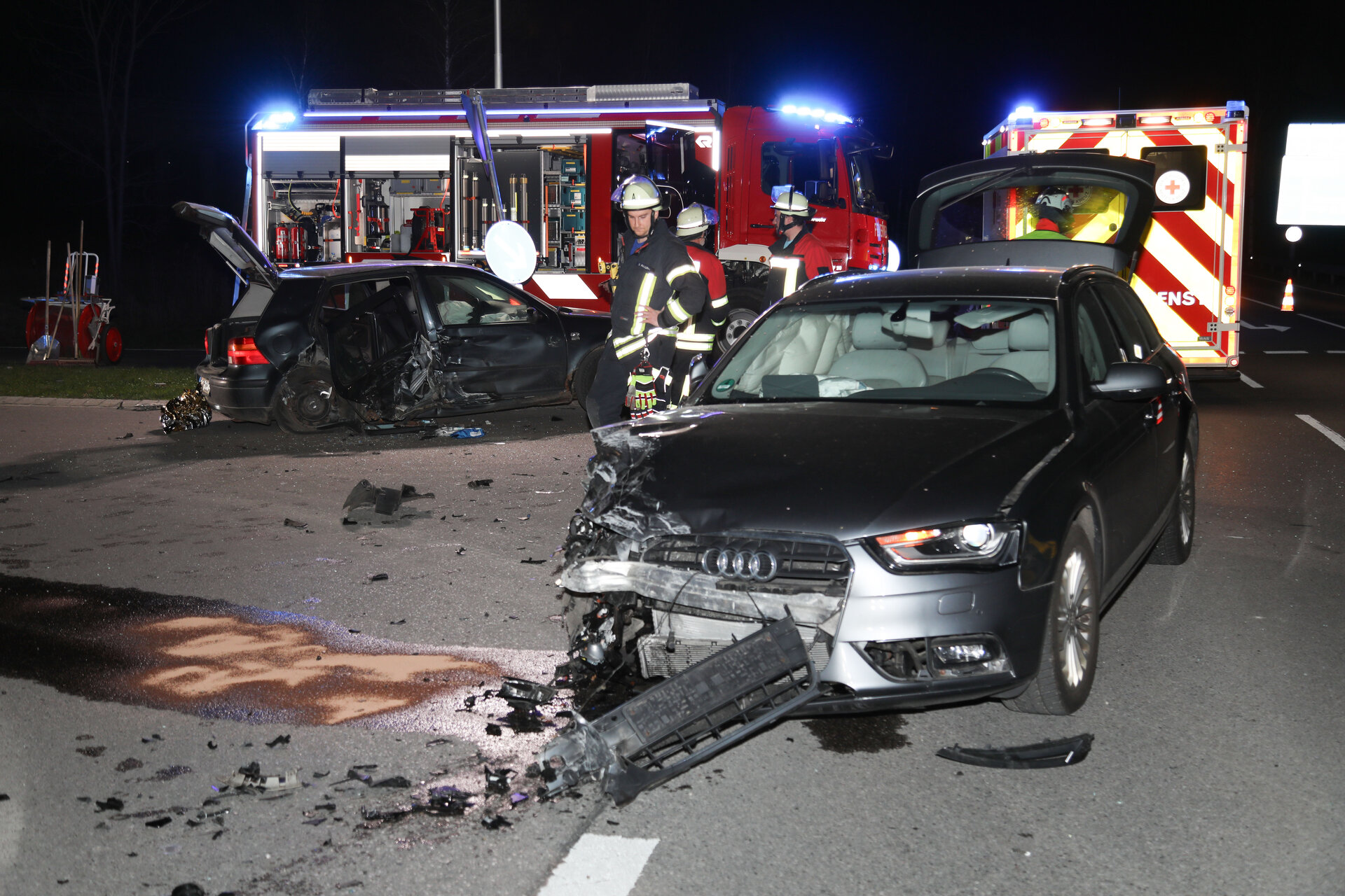 Auf der B2 bei Ohlstadt sind gestern Abend zwei Fahrzeuge zusammengeprallt. Ein Wagen mit drei Insassen wollte von der Bundesstraße nach Ohlstadt abbiegen. Dabei übersah er ein entgegenkommendes Auto und es kam zum Zusammenstoß. Die Feuerwehr war mit 18 Einsatzkräften vor Ort, die B2 wurde halbseitig gesperrt. Alle fünf beteiligten Personen kamen ins Krankenhaus.