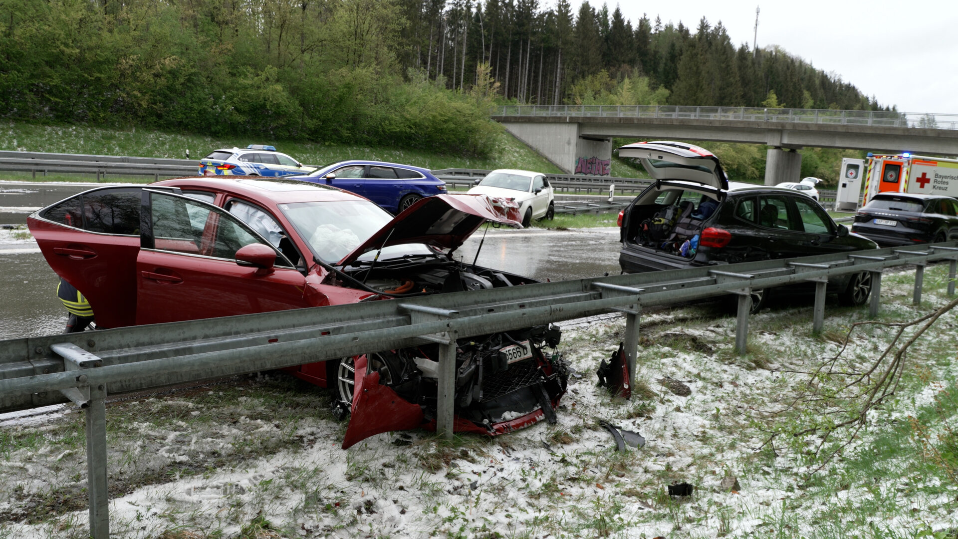 Bei einem Unfall auf der Autobahn A95 ist es am Nachmittag Höhe Murnau/Kochel zu einem tragischen Unfall gekommen. Bei einer Massenkarambolage Richtung München starb ein Autofahrer, andere wurden wohl mittelschwer bis leicht verletzt. Insgesamt waren laut Polizei sechs Fahrzeuge beteiligt. Wie es zu dem Unfall kam, ist noch nicht bekannt. Die Autobahn bleibt voraussichtlich bis Mitternacht gesperrt, eine Umleitung wurde eingerichtet. Mehrere Gutachter nehmen den Unfall auf. Zeugen werden gebeten sich bei der Verkehrspolizei Weilheim zu melden.