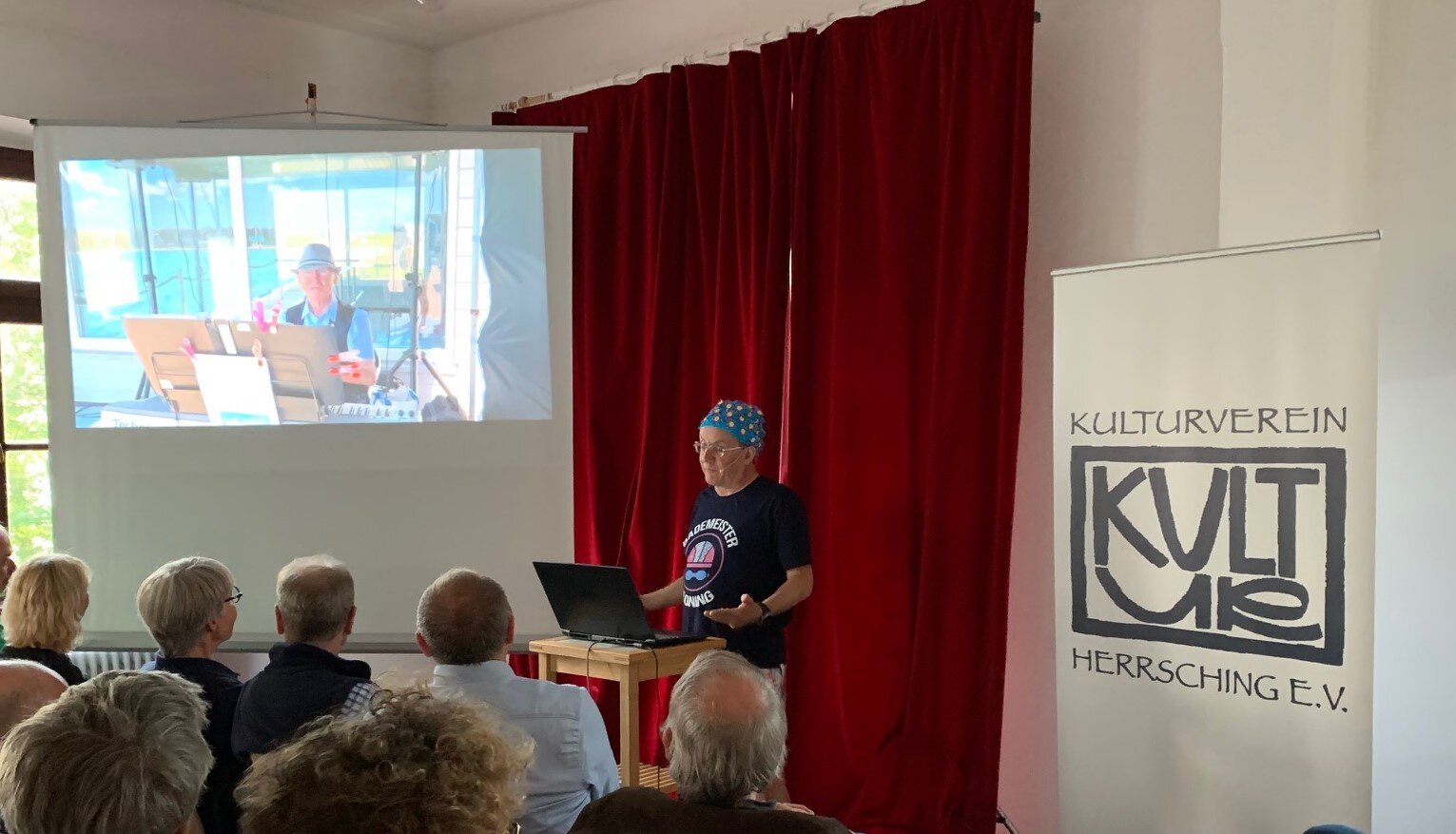 Prominente Unterstützung für den Wiederaufbau der Herrschinger Stege. 800 Euro kamen beim Vortrag von Komiker und Moderator Wigald Boning zum Thema Schwimmen zusammen. Er selbst wohnt in Herrsching. Boning hatte im ausverkauften Kurparkschlösschen Bilder von zahlreichen Orten gezeigt, an denen er ins Wasser gesprungen war. Unter anderem die Londoner Themse oder auch mehrere Hafenbecken. Am Ende war der Zweck der Veranstaltung erfüllt: Der Herrschinger Kulturverein sammelte 800 Euro ein, die auf das Spendenkonto zum Wiederaufbau der Herrschinger Stege eingezahlt wurden.