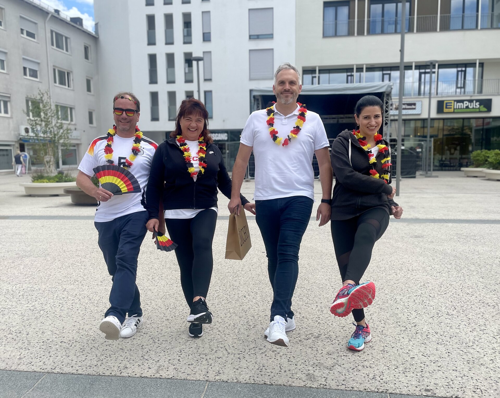 Heute haben nicht nur unsere deutschen Fußballnationalspieler ihren großen Auftritt in der Allianz Arena, sondern auch fünf Tänzer aus Geretsried. Sie treten bei der Eröffnungsfeier auf, nachdem sie sich bei einem großen Casting unter insgesamt 1200 Mitbewerbern durchgesetzt haben. Seit zwei Wochen trainieren die fünf zusammen mit über 300 weiteren Tänzern für Ihre Einlage bei der Eröffnungsfeier. „Ihr präsentiert unser Land und unsere Stadt auf der ganz großen Bühne. Wir sind sehr stolz auf euch und drücken euch für eure Show und unserer Mannschaft im Anschluss gegen Schottland ganz fest die Daumen!“, sagte Bürgermeister Michael Müller bei der Verabschiedung.