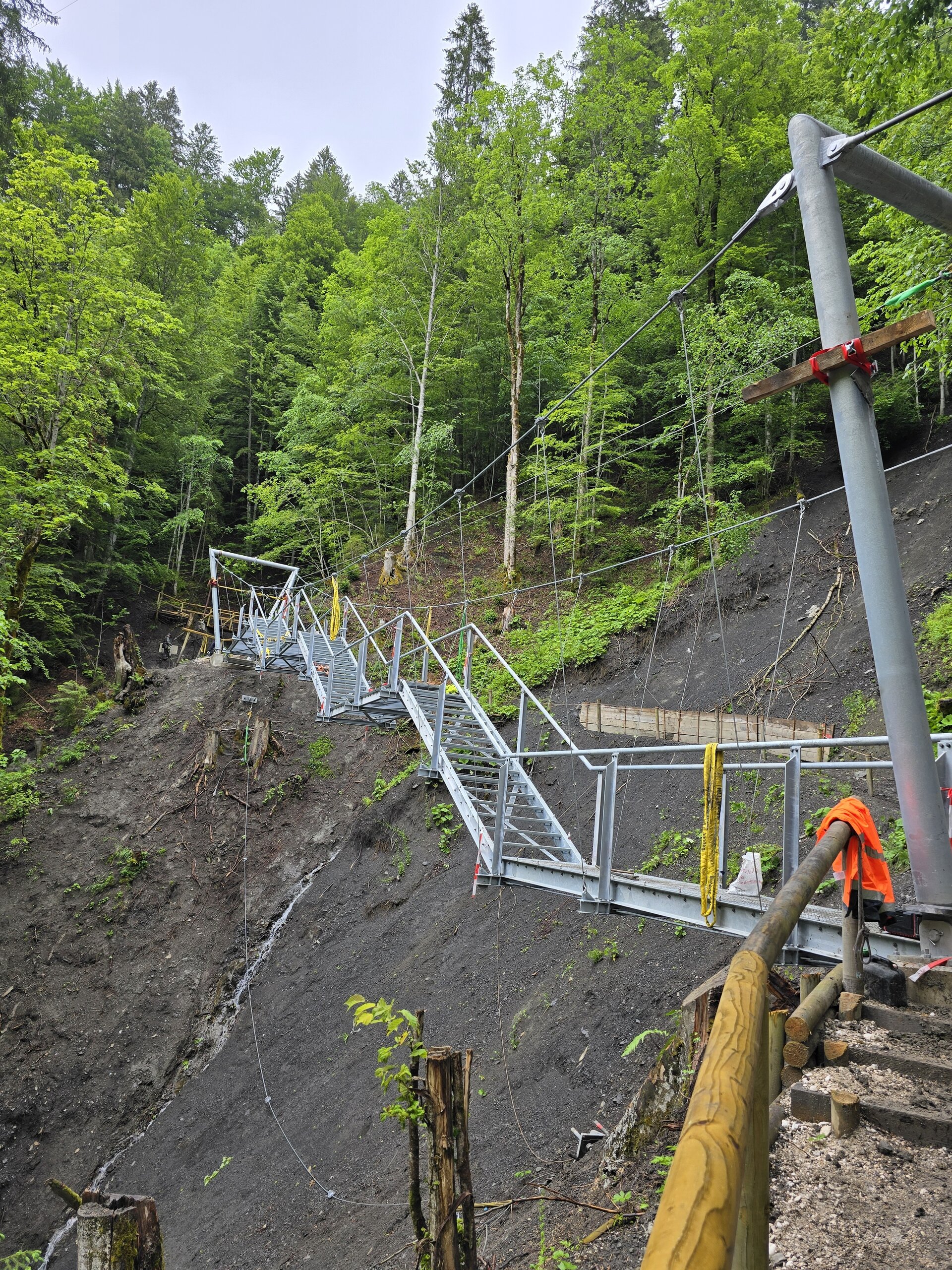 Mit über 200.000 Besuchern im Jahr gilt die Partnachklamm in Garmisch-Partenkirchen als beliebtes Ausflugsziel. Heute wird dort die neue Hängebrücke eröffnet. Sie verbindet das südliche Ende der Klamm bis nach Graseck. Nach langer und aufwendiger Bauzeit wird die neue Brücke am Vormittag unter anderem von Bürgermeisterin Elisabeth Koch eingeweiht. Mit einer Länge von 36 Metern überspannt die neue Brücke die komplette Hangrinne. Aufgrund des großen Höhenunterschieds wurde sie als Stufenhängebrücke konstruiert, um eine zu steile Steigung von 23 Prozent zu vermeiden. Das Projekt hat rund 450.000 Euro gekostet. Knapp 200.000 Euro sind dabei von Leader gefördert worden.