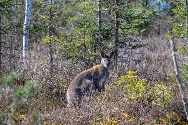Bei Kängurus denken wir alle wahrscheinlich erstmal an Australien oder den Tierpark. Jetzt aber auch an den Landkreis Weilheim-Schongau. Im Frühjahr 2024 ist eines vom Saliterhof bei Kurzenried entwischt. Lange war es still um das Tier. Jetzt ist es einem Hobbyfotografen vor die Linse gehüpft. Am Premer Moorlehrpfad hat sich das Känguru fotografieren lassen.