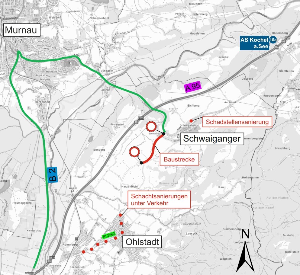 Straßensperre wegen Fahrbahnerneuerung zwischen Ohlstadt und Schwaiganger