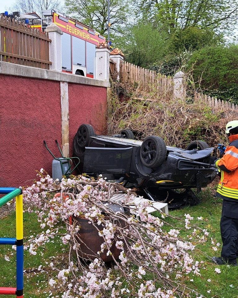 Autofahrerin kracht gegen Zaun, überschlägt sich und landet in Garten