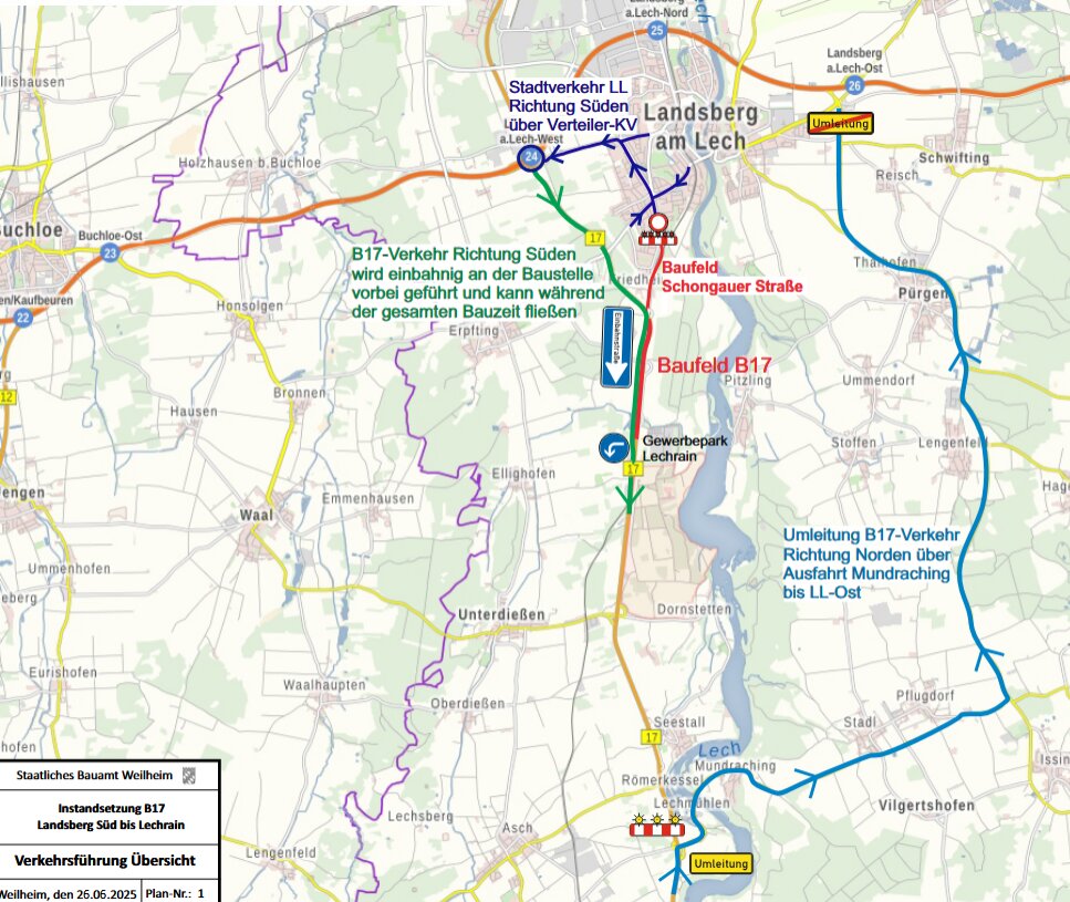Verkehrsbehinderungen im Landsberger Süden - B17 ab Mittwoch halbseitig gesperrt