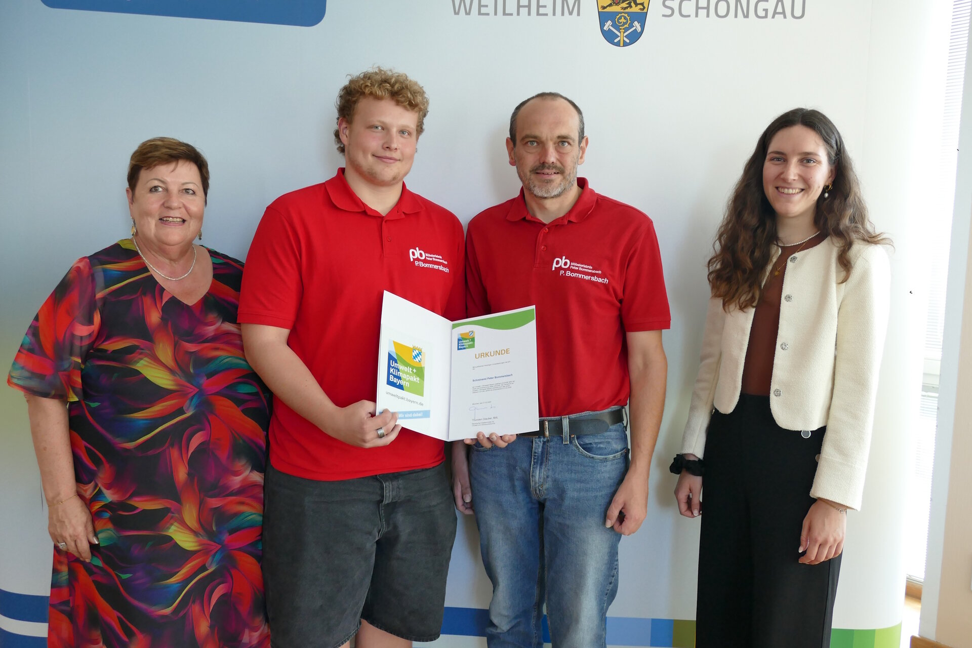 Verantwortung im Umgang mit Ressourcen und eine umweltschonende Produktion. Dafür hat die Schongauer Schreinerei „Bommersbach“ jetzt bereits zum zweiten Mal die Urkunde des Umwelt- und Klimapakts Bayern verliehen bekommen. Landrätin Andrea Jochner-Weiß überreichte die Auszeichnung Anfang der Woche. Vor 30 Jahren wurde der Umweltpakt Bayern initiiert, um Betriebe, Unternehmer und staatliche Einrichtungen zu motivieren, betrieblichen Umweltschutz über das Maß der gesetzlichen Vorgaben hinaus umzusetzen.