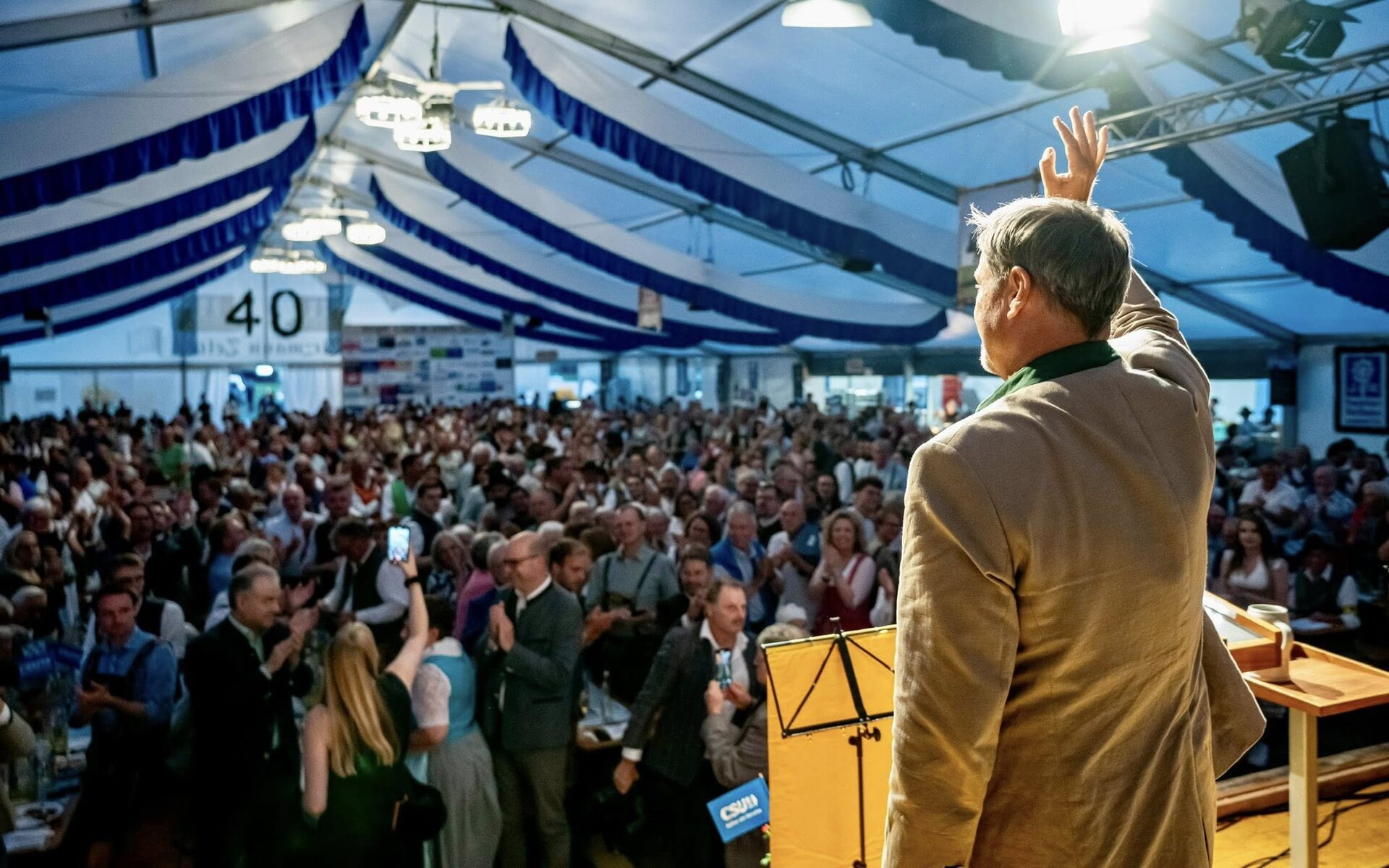 Premiere im vollen Festzelt. Ministerpräsident Markus Söder war gestern zum ersten Mal beim politischen Abend der CSU im Rahmen der Festwoche Haunshofen zu Gast. Vor über 1.300 Zuschauern sprach er sich in der aktuellen Debatte für eine Wehrpflicht aus.