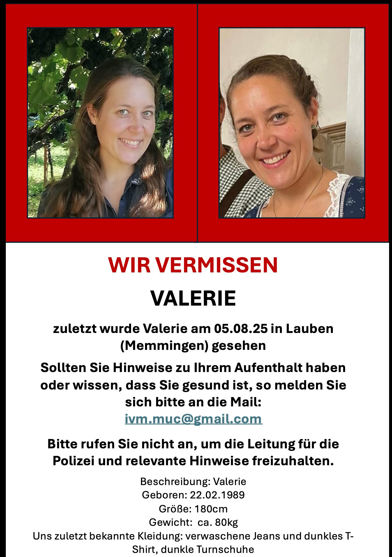 Seit genau drei Wochen wird eine 36-jährige Frau aus Lauben im Allgäu vermisst. Eine Spur führte zuletzt ins Oberland. Ihr Geldbeutel wurde auf einem Baumarkt-Parkplatz in Landsberg gefunden. Angehörige haben nun einen Spendenaufruf auf der Plattform Gofundme gestartet. Mit dem Geld sollen unter anderem freiwillige Helfer unterstützt werden, die nach der vermissten Mutter suchen. Rund 250 Menschen sind dem Hilfe-Aufruf bereits gefolgt und haben mehr als 7.000 Euro gespendet. Die Polizei kann derweil keine Entwarnung geben und ermittelt weiter in alle Richtungen.