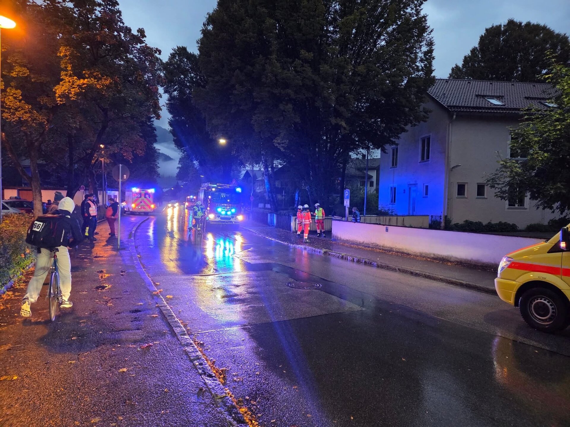 Viel Blaulicht und aufheulende Martinshörner in Garmisch-Partenkirchen. Gestern gegen 19:00 Uhr hat sich die Marktgemeinde in einen Übungsplatz für etwa 150 Einsatzkräfte von Feuerwehren, Polizei und dem BRK verwandelt. Das Szenario: Ein Brand in einem Gebäude im Herzen von Garmisch-Partenkirchen mit vielen Betroffenen. Für mehrere Stunden herrschte Hochbetrieb im Umfeld des Kongresshauses. Der Übungsort war das ehemalige Gesundheitsamt. Noch vor 21 Uhr war die Übung beendet.