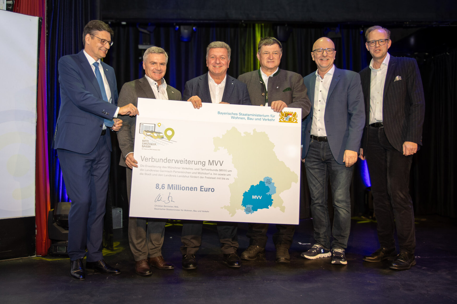 Der Münchner Verkehrs- und Tarifverbund MVV wächst weiter. Aus dem Oberland stößt ab dem 01. Januar 2026 auch der Landkreis Garmisch-Partenkirchen dazu. Für die Fahrgäste bedeutet das: Tarif, Vertrieb und Fahrgastinformation werden einfacher, und damit auch die Nutzung von Bus und Bahn, teilt der MVV mit. Bayerns Verkehrsminister Christian Bernreiter hat gestern im Rahmen der Verbundraumerweiterungsfeier in München symbolisch an Landrat Anton Speer den Förderbescheid überreicht.