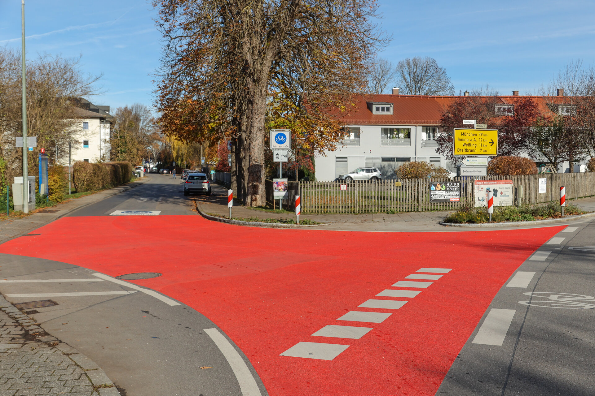 Rot und auffällig: Herrsching installiert neue Fahrradstraßen