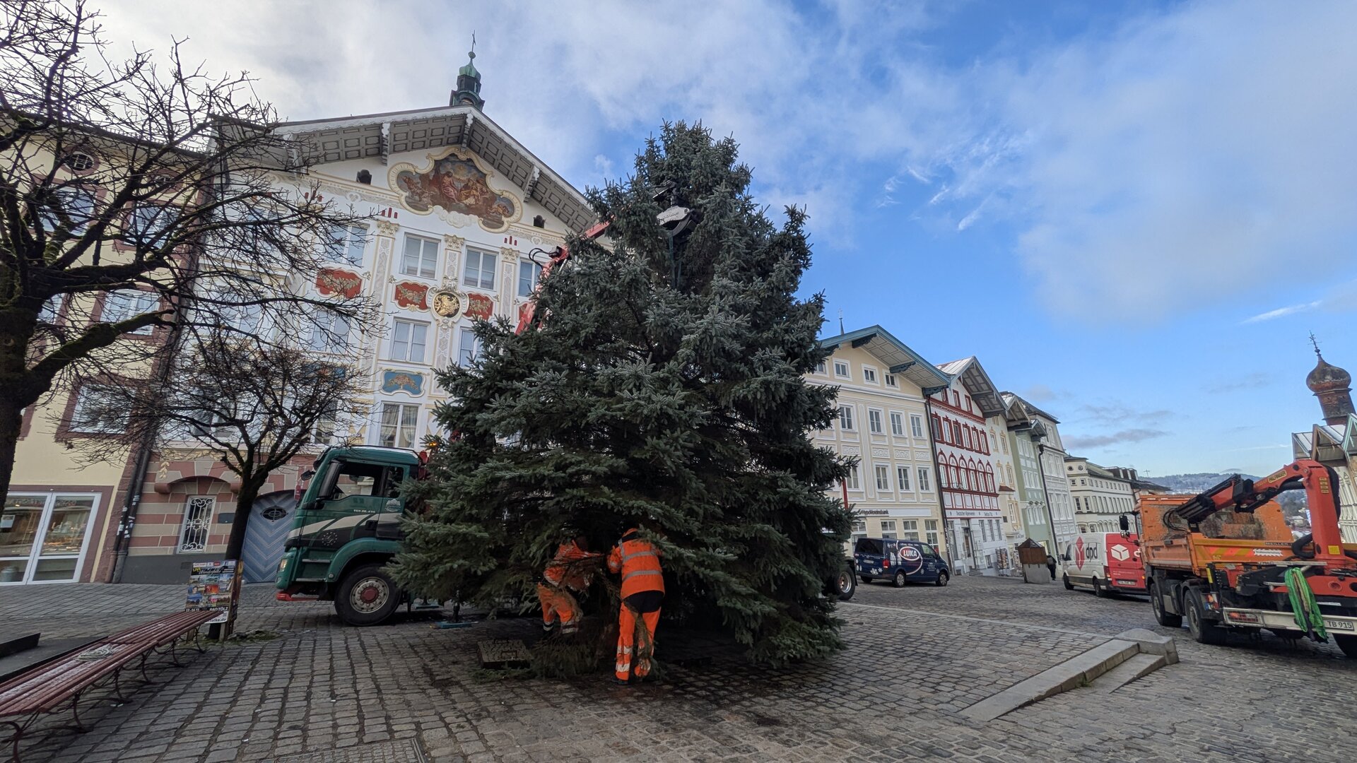 In Bad Tölz steht der Christbaum - Blaufichte wird jetzt mit Lichtern geschmückt
