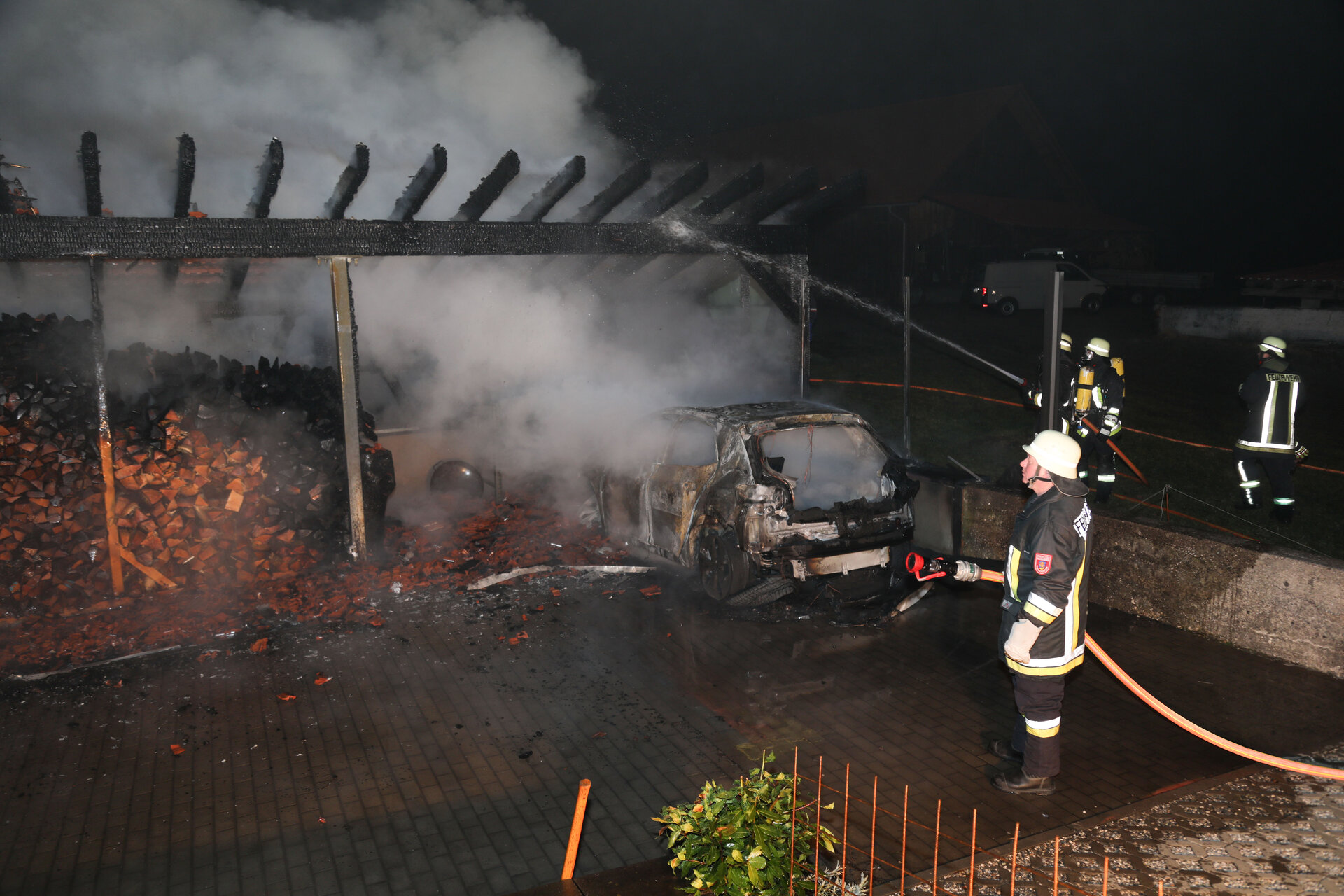 Ein E-Auto hat heute am frühen Morgen für einen Großeinsatz der Feuerwehr in Hofheim gesorgt. Der Integrierten Leitstelle wurde ein größerer Brand am Anbau eines Hauses gemeldet. Vermutlich aufgrund eines technischen Defekts war der unter einer Überdachung abgestellte Wagen in Brand geraten. Das schnelle Eingreifen der Rettungskräfte verhinderte wohl, dass die Flammen auch auf das Haus übergreifen konnten. Der Schaden wird auf rund 60.000 Euro geschätzt. Verletzt wurde niemand.