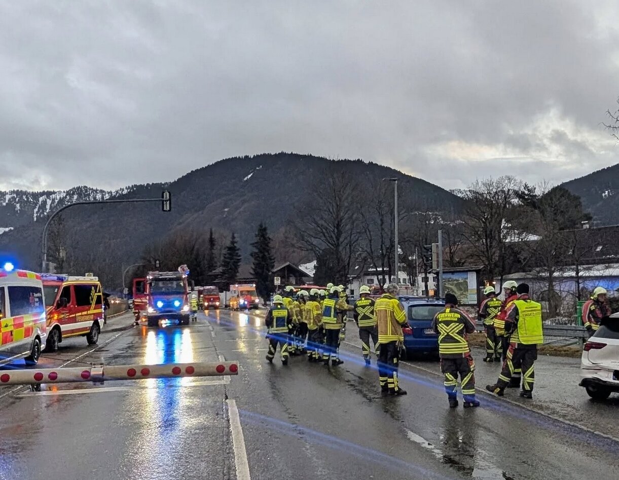 B23: Auffahrunfall in Unterammergau sorgt für Stau und gesperrte Bahnstrecke