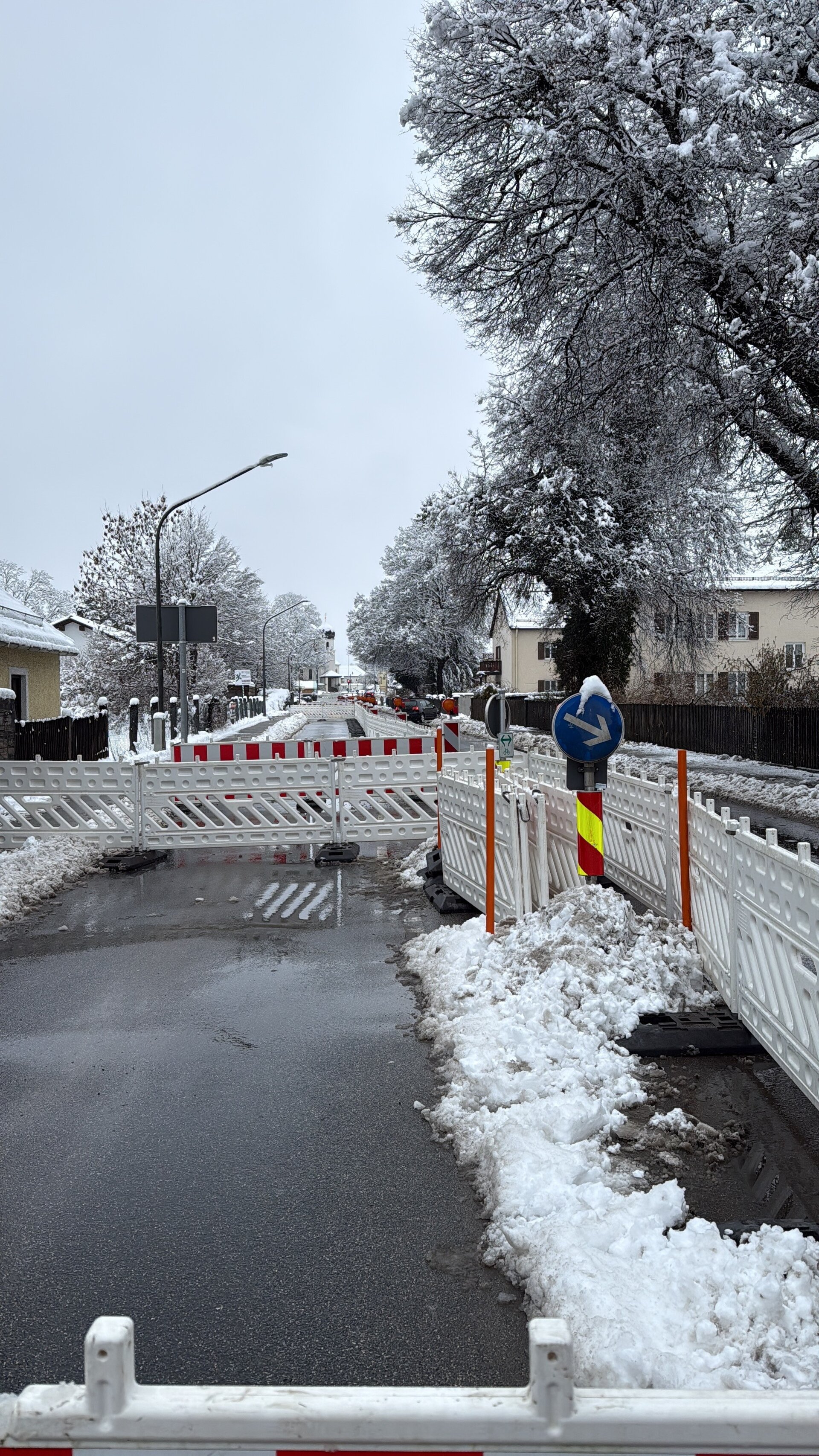 Nicht nur der Schnee bremst Autofahrer heute aus, sondern auch Bauarbeiten. Auf der B2 in Murnau geht ab 9 Uhr in Fahrtrichtung Weilheim nichts mehr. Die Reschstraße ist für sieben Wochen gesperrt. Richtung Garmisch-Partenkirchen rollt der Verkehr einspurig an der Baustelle vorbei. Warum es keine wechselseitige Verkehrsführung gibt, erklärt Sophie Klagsbrun, Sprecherin des Marktes.