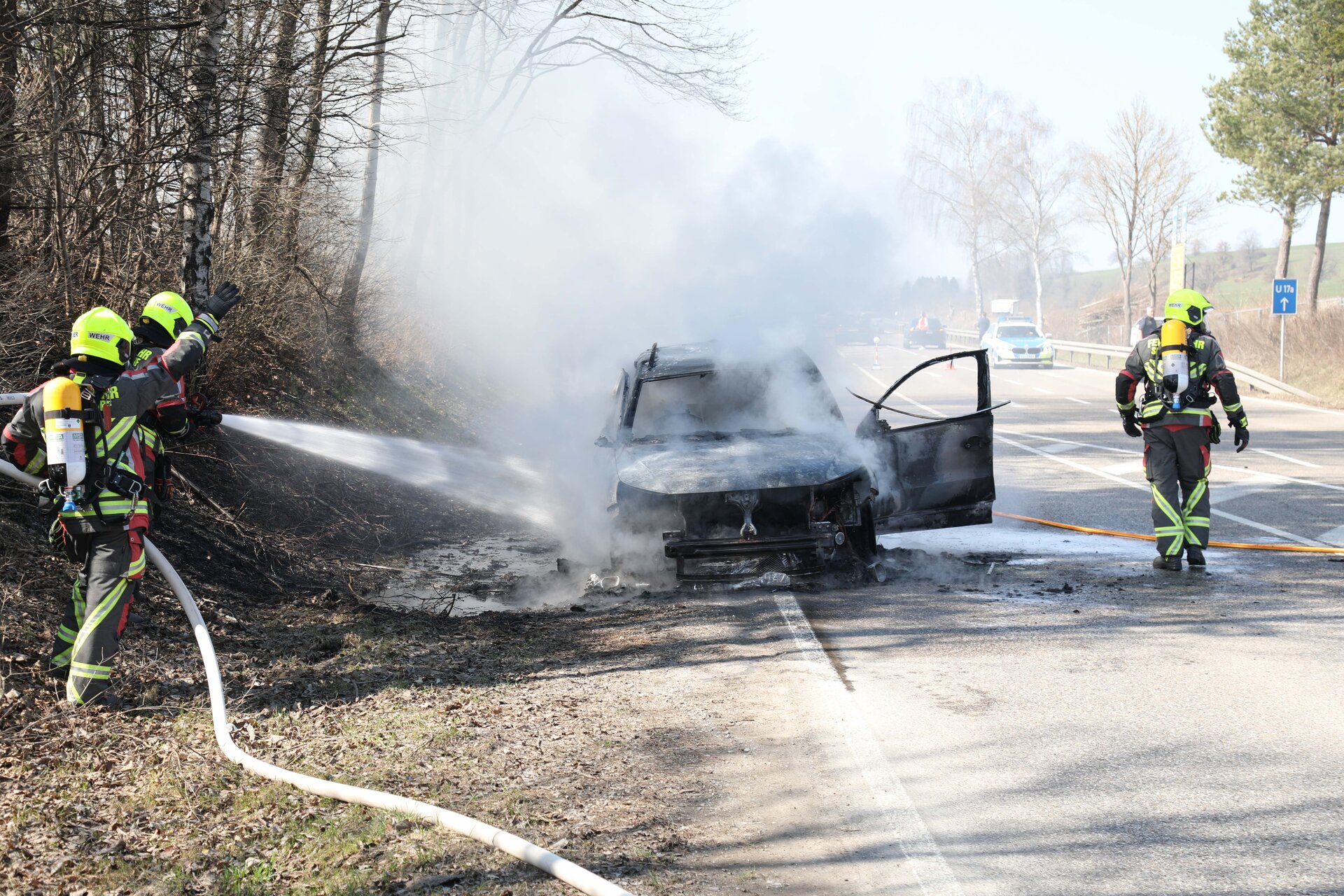 B472: Auto geht in Flammen auf - Fahrer kann sich rechtzeitig retten