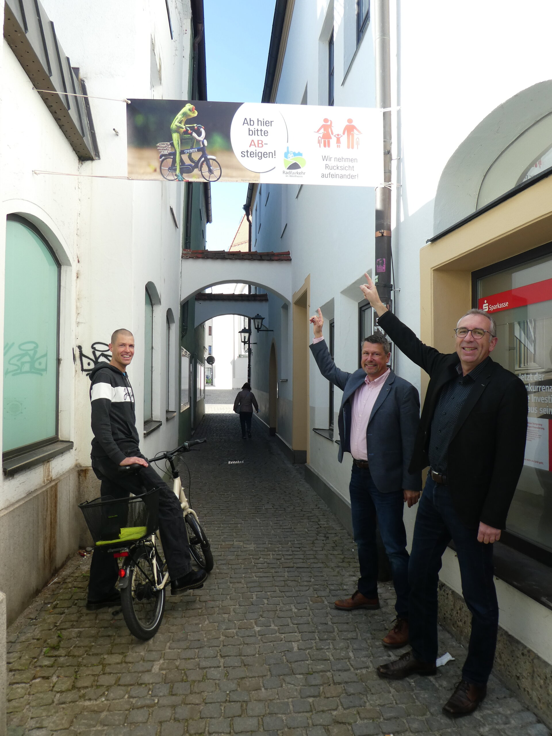 Weilheim: Infobanner in der Buxbaumgasse wirbt für rücksichtsvollen Radverkehr
