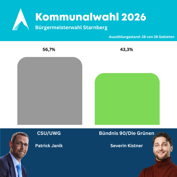 In dieser Übersicht findet ihr nochmal alle Gewinner der Stichwahlen in den fünf Oberland-Landkreisen Weilheim-Schongau, Garmisch-Partenkirchen, Starnberg, Bad Tölz-Wolfratshausen und Landsberg am Lech - einfach durchswipen: