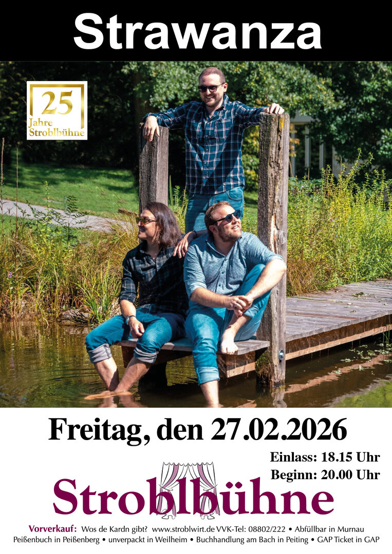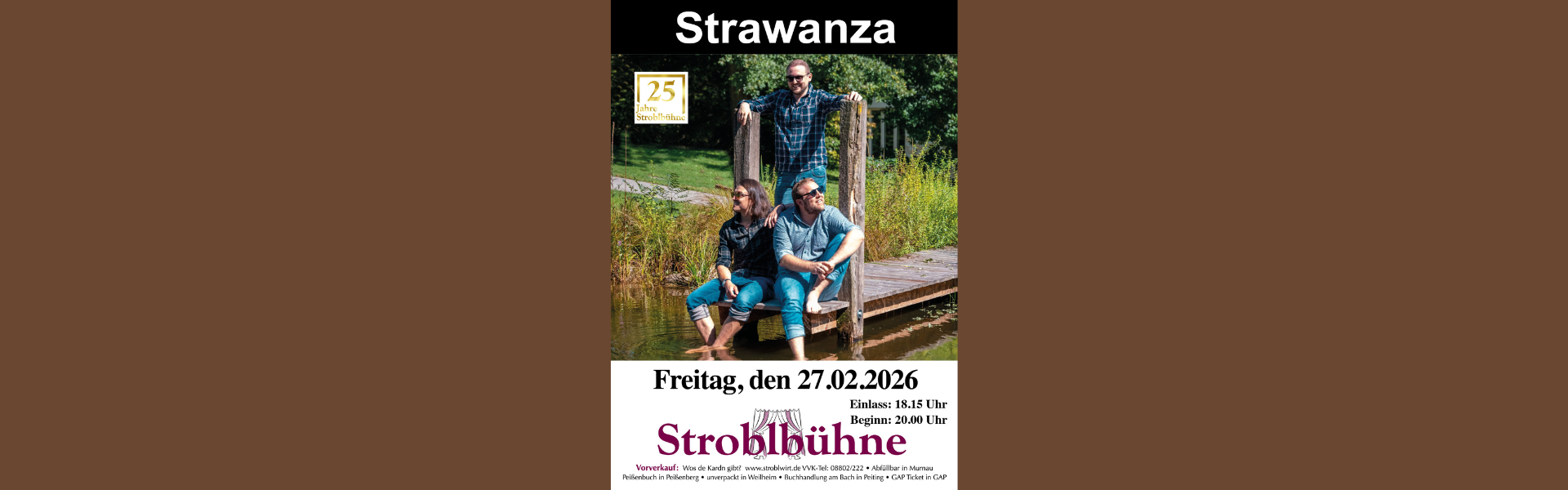 STRAWANZA ist im Winter 2025 und Frühling 2026 in der TRIO-Besetzung vor allem auf Kleinkunstbühnen und in Café-Bars und Restaurants unterwegs um Songs und Texte unter die Leute zu bringen bevor es im Sommer wieder in Vollbesetzung auf die größeren Bühnen geht!