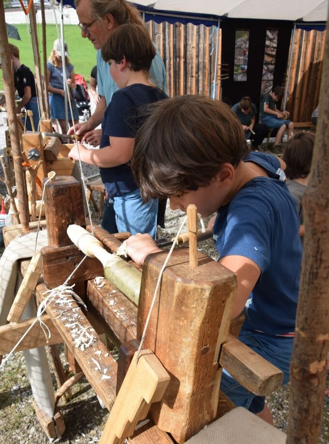 Werkeln mit frischem Holz – Drechseln auf der Wippdrehbank, Schnitzen, Schneiden mit dem Ziehmesser und vielem mehr. Einfach vorbeikommen und mitmachen!