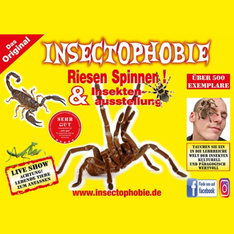 Mit dabei die größte lebende Vogelspinne der Welt und ein Streichelzoo mit Spinnen und Insekten für Jung und Alt!