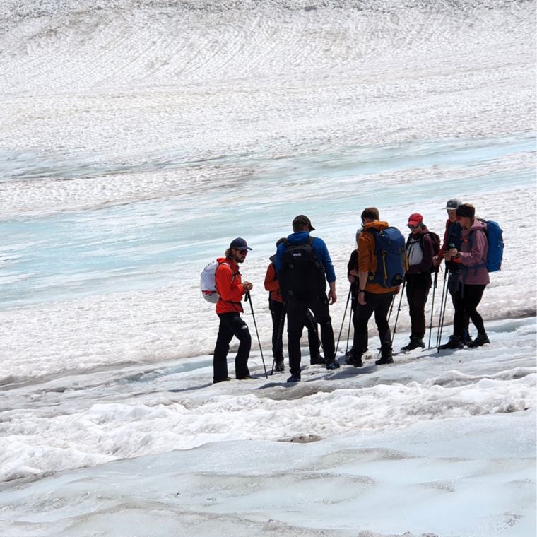 Ein Gletscherexperte der Bergschule VIVALPIN nimmt interessierte Gäste mit auf eine Reise durch die Erdgeschichte. Die Teilnehmer werden die Spuren des Eises von der Würmeiszeit (vor 11.000 Jahren) bis heute entdecken: Moränen und Permafrost, Gletscherseen, Versteinerungen aus einer längst vergangenen Zeit und vieles mehr. Auf der ca. zweistündigen Exkursion lernen Gäste viele interessante Fakten, wandern über Gletschereis und erkunden die Spuren der Gletscher.