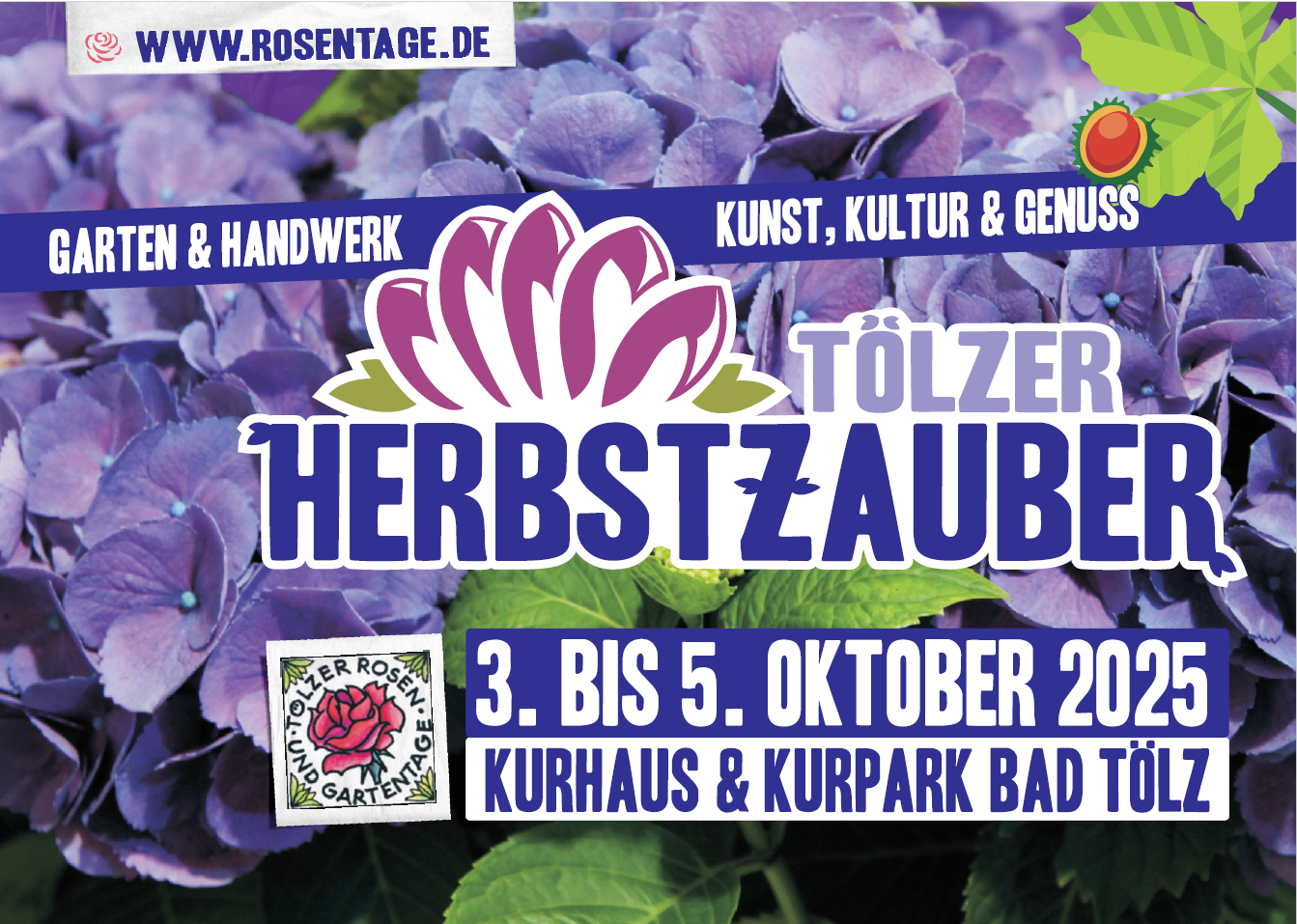 Wie eine eigene Saison präsentiert sich der Tölzer Herbstzauber 2025, der diesmal von 3. bis 5. Oktober Aussteller aus Deutschland und angrenzenden Ländern an die Isar holt. Das Festival für Garten und Handwerk im Tölzer Kurhaus und Kurpark lässt den Blick weit schweifen über Blüten, Handwerk, saisonale Pflanzen, Kunsthandwerk und Kunst. Der Sommer klingt noch nach, der Herbst lockt schon mit seinen Farben, liebevoll all die Details für draußen und drinnen: Das Panorama bilden Spätblüher und frühes Grün fürs kommende Jahr, Schmuck und Kleidung, Gartenmobiliar und Accessoires, Kulinarisches wie Früchte, Nüsse, Marmeladen, Weine, Öle, Fruchtessige oder Pestos. Alles wird im historischen Kurhaus und unter lichten Bäumen des Kurparks zum Erlebnis, auch das große Begleitprogramm mit Tango-Ball und Drehorgel-Klang, mit Musik von „Jazzcafe“ und Mississippi-Feeling an der Isar, mit Fachinformationen, Lesungen und Vorträgen über Selbsthilfe und Selbstwertgefühl sowie mit Zauberei und Ballon-Modellage für Groß und Klein. Kinder erhalten ihr eigens Areal, der Tölzer Herbstzauber richtet sich an die ganze Familie. Dorthin geht es auf vielen Wegen, am besten mit der Regionalbahn und anschließend mit dem Stadtbus zur Haltestelle Ludwigstraße Kurhaus, oder fußläufig vom Zentralparkhaus P3 in der Bockschützstraße zum Beispiel. Einmal beim 19. Tölzer Herbstzauber angekommen bilden Flair und Charme des Festivals eine ganz eigene Saison.