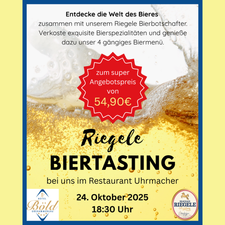 Ein Abend voller Genuss – das erwartet Sie am 24. Oktober beim Biertasting im Aktiv Hotel Böld in Oberammergau.